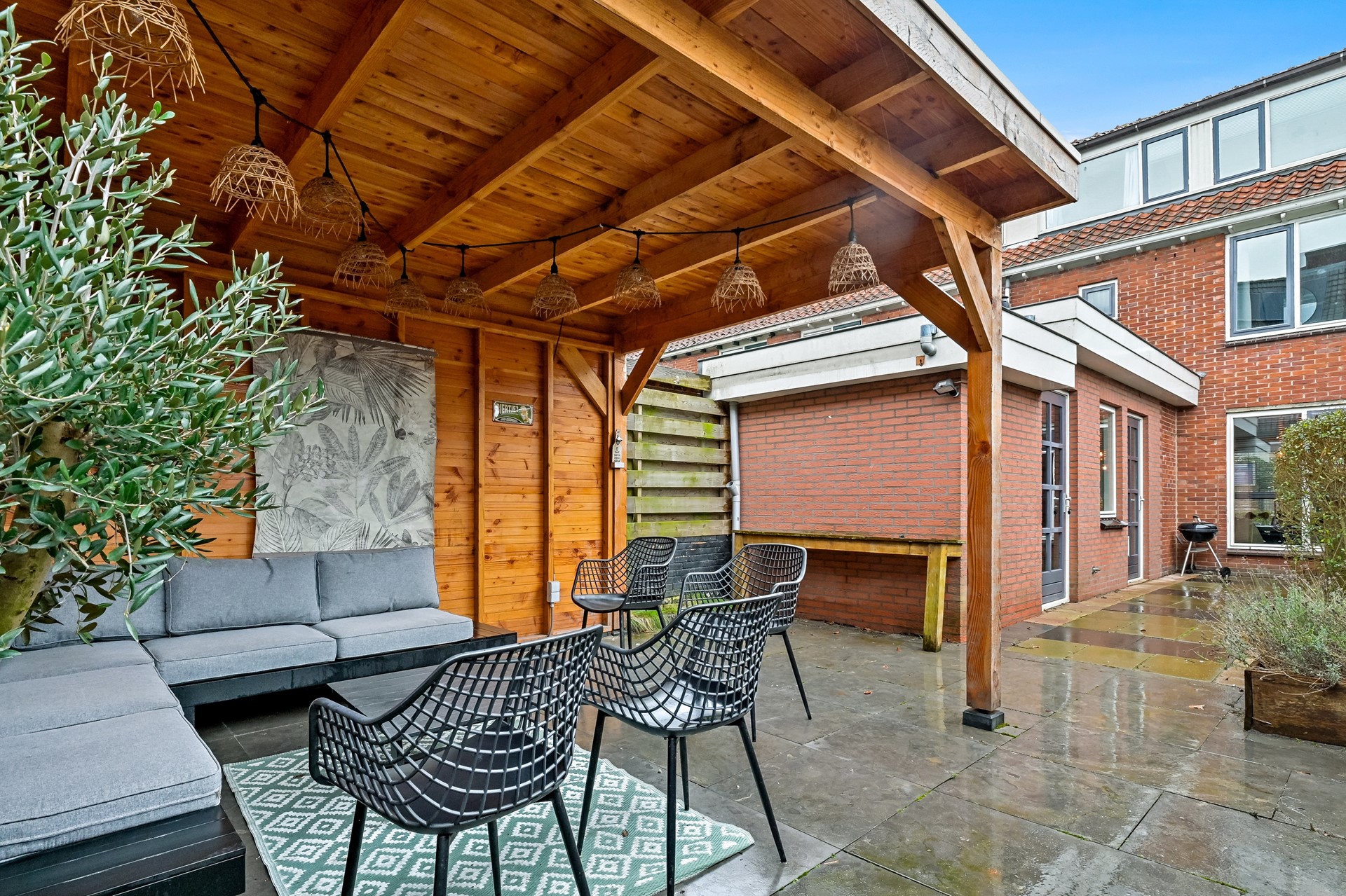 Via de voordeur kom je in de hal met meterkast (voorzien van 6 groepen en 2 aardlekschakelaars), garderobe en toiletruimte. De moderne toiletruimte is voorzien van wandcloset en een plateau voor accessoires. Vervolgens bereik je de lichte en sfeervolle woonkamer met aan de voorzijde een groot kunststof kozijn met HR++ beglazing, nette laminaat vloer, gestucte wanden met gedeeltelijk aangebrachte wandpanelen, een trapkast en afgesloten trap. Het zitgedeelte bevindt zich aan de voorzijde en biedt voldoende plek voor een leuke hoekbank. De eethoek is aan de achterzijde van de woning te vinden, evenals de keuken. De keuken in rechte opstelling bevindt zich gedeeltelijk in de uitbouw en is voorzien van diverse inbouwapparatuur, waaronder een gaskookplaat, afzuigkap en combimagnetron. Daarnaast is er ruimte gereserveerd voor een vaatwasser. Aansluitend bevindt zich de ruime bijkeuken, een zeer praktische toevoeging aan de woning. Hier is volop plaats voor een vriezer of koelkast, een tweede garderobe en extra bergruimte door de aanwezigheid van een grote kast die in de woning achterblijft. Vanuit de bijkeuken heb je toegang tot de diepe achtertuin van maar liefst 13 meter! In de tuin bevindt zich een aangebouwde stenen berging met opstelplaats voor de C.V. ketel (Vaillant; 2020). De berging is praktisch en ideaal voor het stallen van fietsen, het opbergen van tuinkussens en gereedschap. Achterin de tuin is recent een sfeervolle veranda geplaatst; een fijne plek waar je gezellig kunt zitten en aan het einde van de middag nog heerlijk van de zon kunt genieten! De achtertuin is tevens te bereiken via de poort te bereiken.