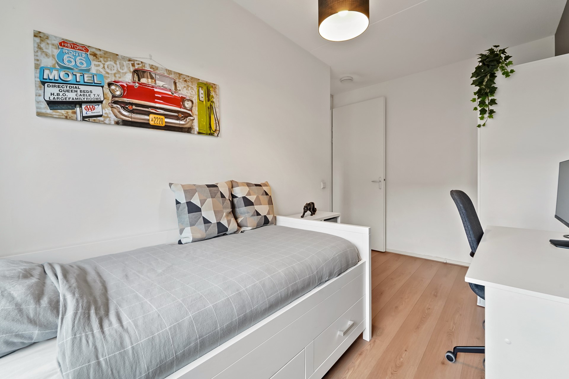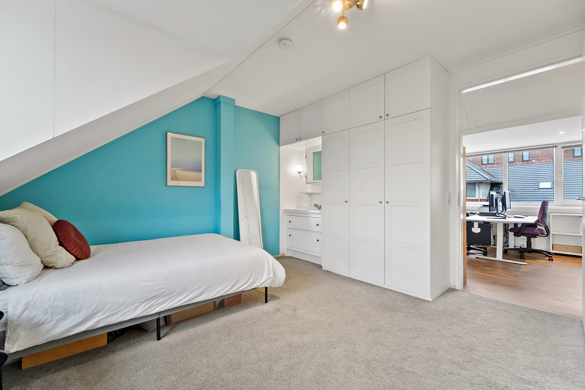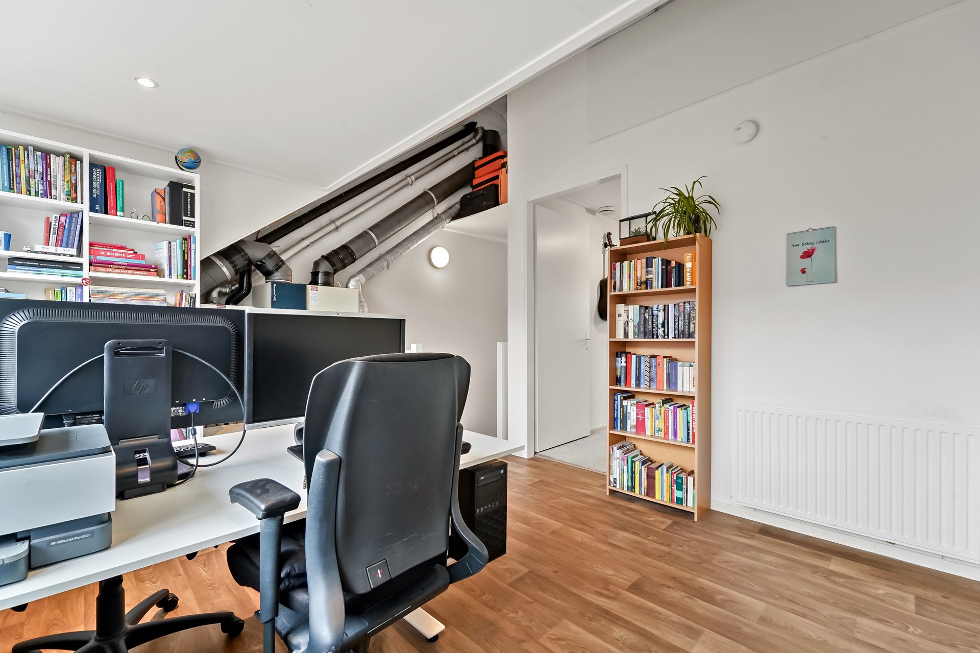 De zolderverdieping is verbouwd en optimaal ingedeeld door de aanwezigheid van twee dakkapellen. De huidige eigenaren gebruiken de overloop als kantoor/werkkamer. In deze ruimte zijn diverse slimme opbergruimtes gecreëerd en zijn er aansluitingen voor wasmachine en droger aanwezig. Ook de CV ketel (2019) en WTW unit bevinden zich hier. Boven de trap en in de nok zijn ook vaste bergruimtes aanwezig. Dankzij de brede dakkapel (2015) is het gebruik van de zolderverdieping geoptimaliseerd. Aan de voorzijde van de verdieping is een zeer riante slaapkamer aanwezig. De slaapkamer beschikt over een ruime vaste kastenwand en een wastafelmeubel. Samen met de dakkapel een hele fijne, verrassende kamer.
