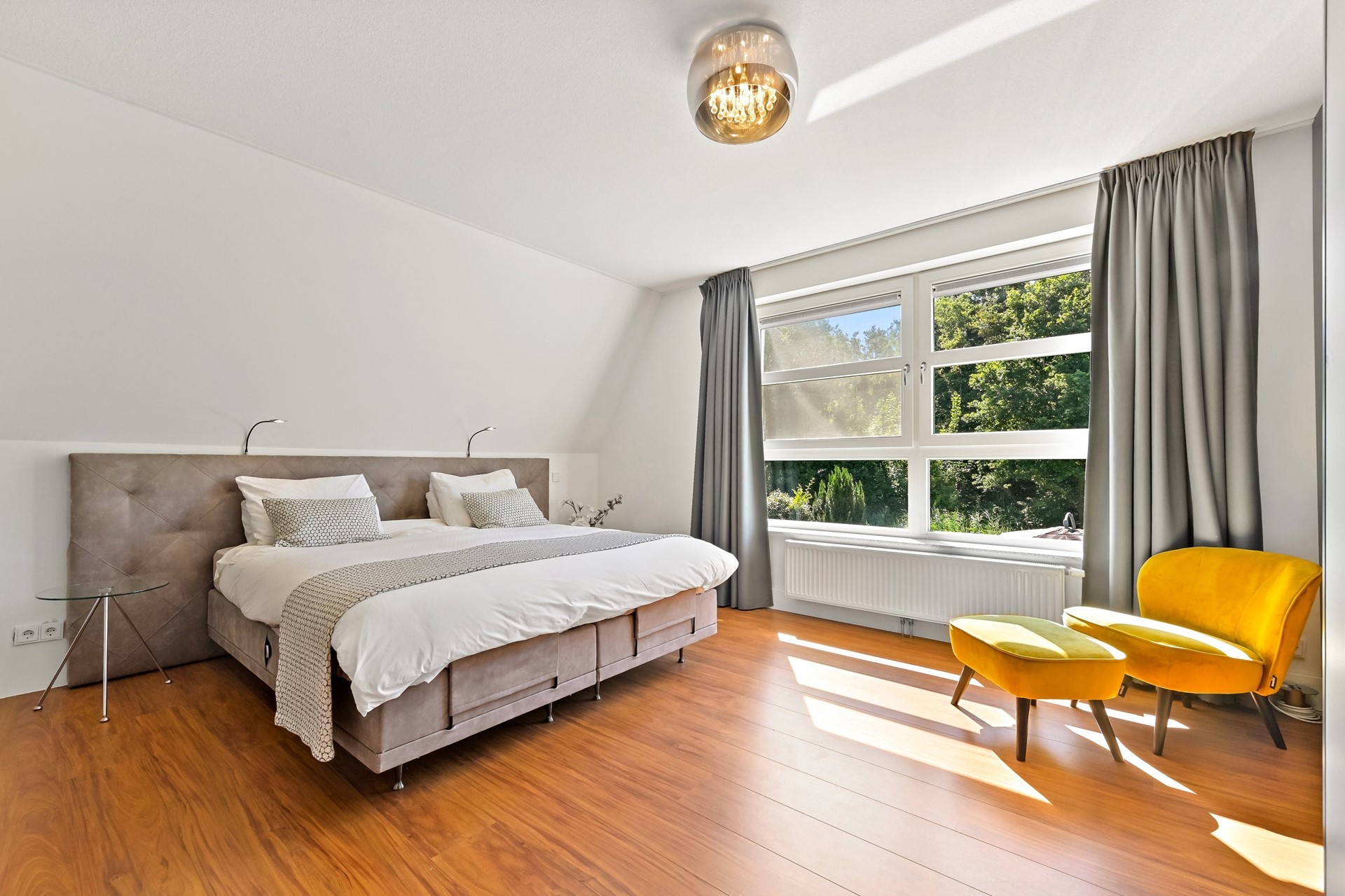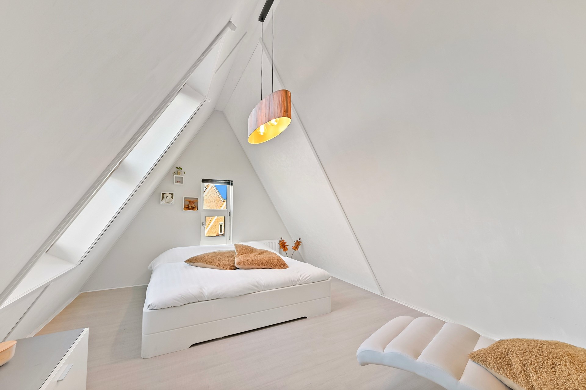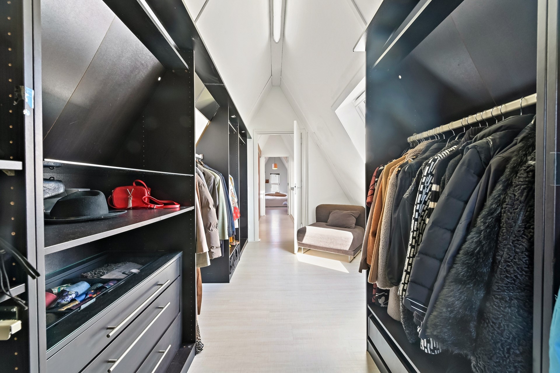 Ook de tweede verdieping van deze woning is door de aanwezigheid van de diverse raampartijen heerlijk licht. Op de overloop is een vaste kast aanwezig met opstelplaats voor de wasmachine, wasdroger, C.V. ketel en mechanische ventilatie. De sfeervolle slaapkamer aan de voorzijde is voorzien van een hoge nok. De andere slaapkamer bevindt zich aan de achterzijde en is op dit moment in gebruik als walk-in closet. Deze kamer kan met gemak als extra slaapkamer worden gebruikt.