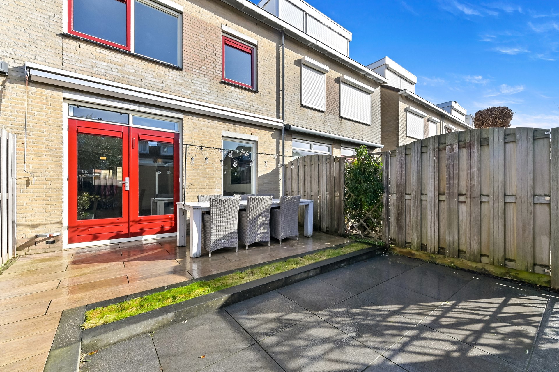 • Zonnige achtertuin op het zuidwesten met berging en achterom