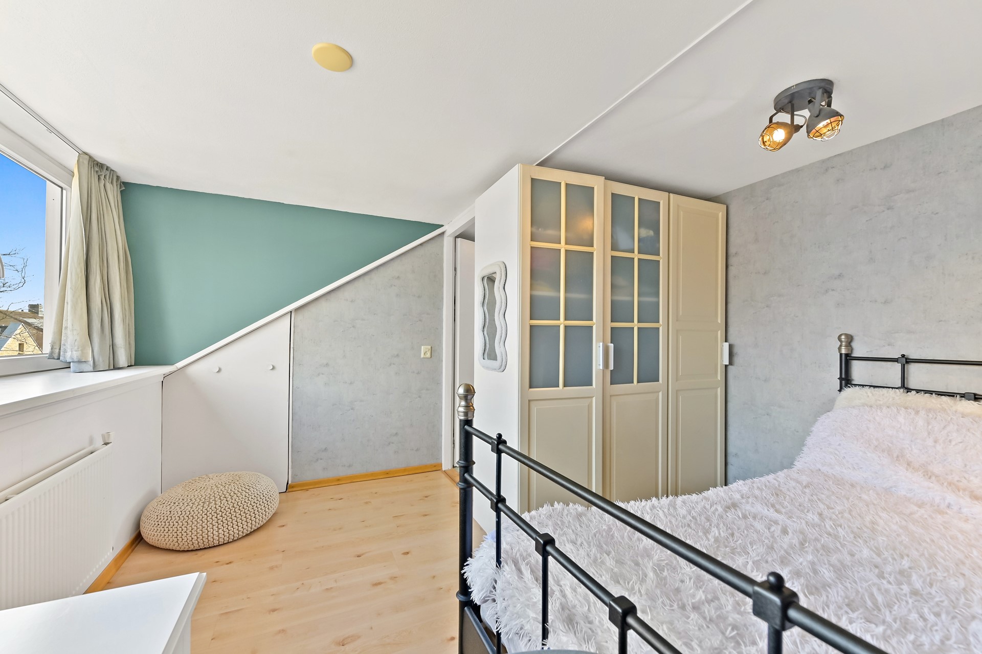 De zolderverdieping is verrassend ruim dankzij de grote dakkapel aan de voor- en achterzijde van de woning. De overloop is voorzien van aansluitingen voor de wasmachine, wasdroger en de C.V. ketel. Op de tweede verdieping zijn twee gelijkwaardige slaapkamers aanwezig. Beide kamers zijn voorzien van bergruimte achter de knieschotten. Vanaf de overloop is de bergvliering te bereiken; ideaal voor het opbergen van bijvoorbeeld uw koffers of seizoensgebonden items.
