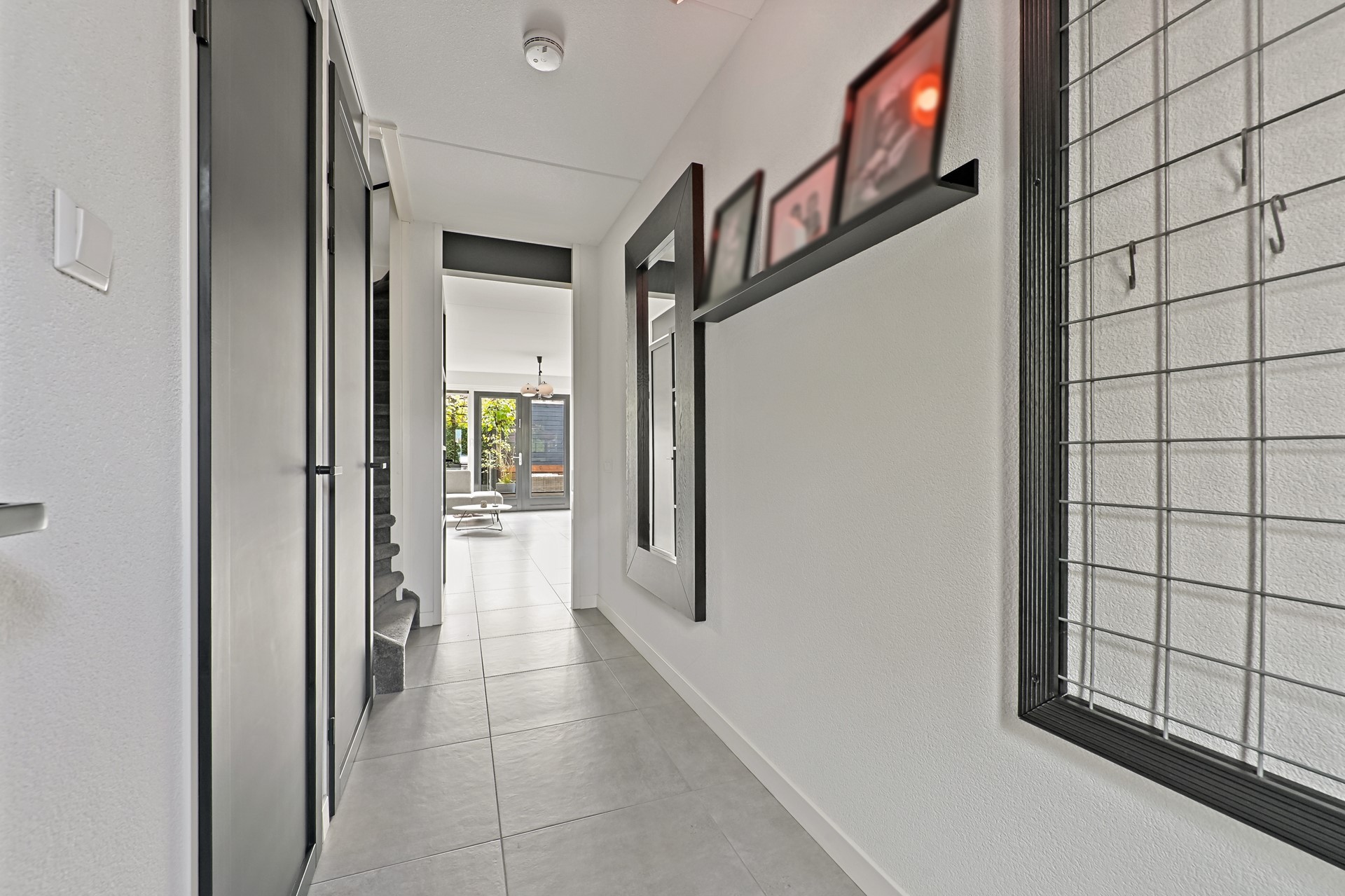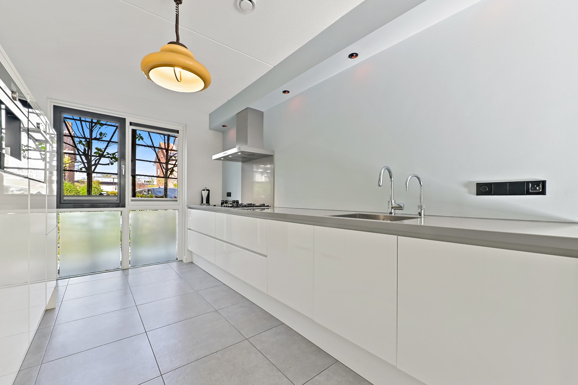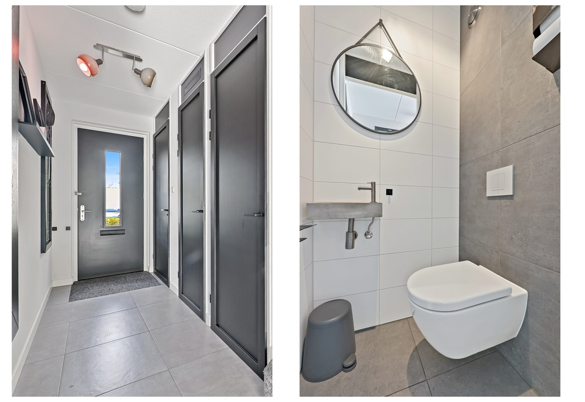Via de voortuin bereik je de entree van de woning. In de hal bevindt zich de meterkast en trapopgang naar de verdieping. De moderne toiletruimte is volledig betegeld en voorzien van een wandcloset en fonteintje. Vanuit de hal kom je uit in de lichte woonkamer met uitbouw en openslaande deuren aan de achterzijde. Onder de trap bevindt zich de trapkast; een ideale plek voor het opbergen van de stofzuiger of bijvoorbeeld huisraad. Aan de voorzijde van de woning is de moderne keuken in parallel opstelling te vinden. De keuken is praktisch en overzichtelijk in te delen dankzij de 1,2 meter brede lades. Bovendien is de keuken voorzien van een verdiept aanrecht en diverse hoogwaardige inbouwapparatuur, waaronder een vijf pits gaskookplaat met wokbrander, koel-vrieskast, RVS afzuigkap, combi-magnetron, koffiemachine, vaatwasser en Quooker. De begane grond is modern afgewerkt en voorzien van een moderne tegelvloer met vloerverwarming. Vanuit de woonkamer is de zonnige, op het zuiden gelegen achtertuin met elektrisch bedienbare zonwering, buitenkraan, houten berging en achterom te bereiken. Een fijne plek waar je in de gehele dag heerlijk van de zon kunt genieten! Op het achtergelegen parkeerterrein zijn voldoende openbare parkeerplaatsen te vinden.