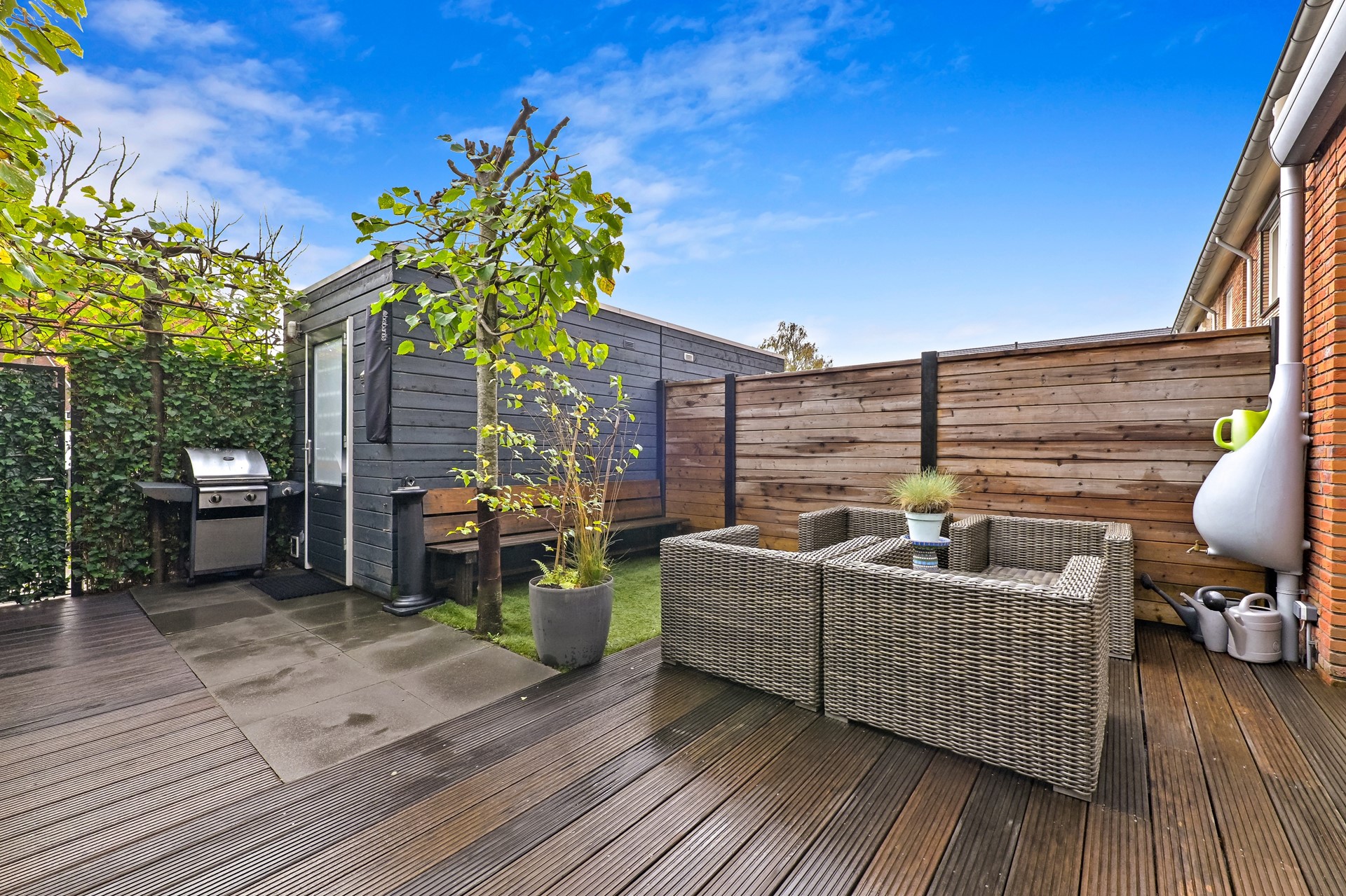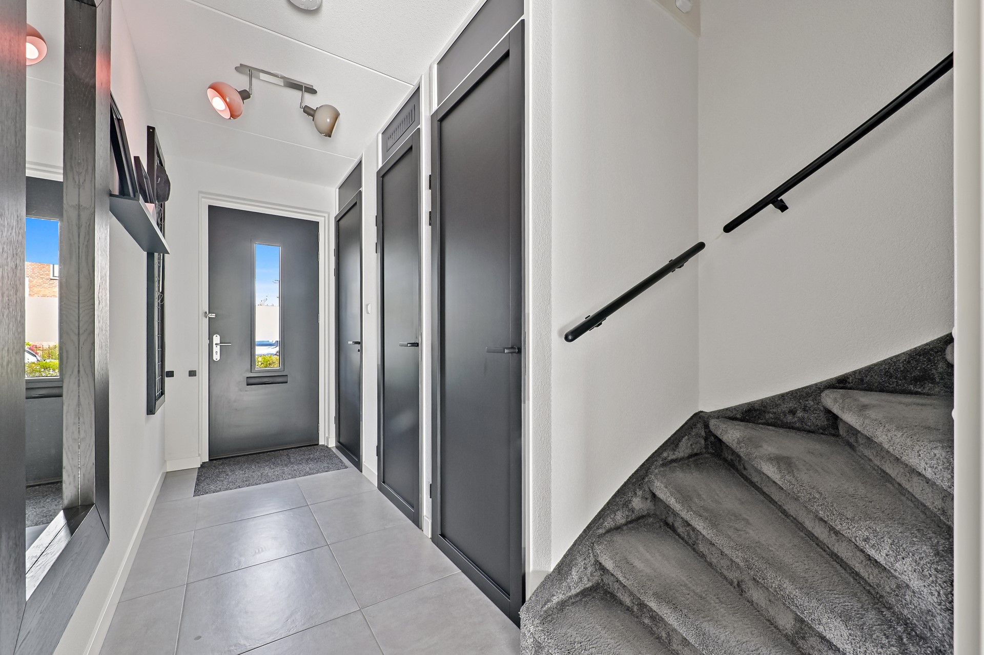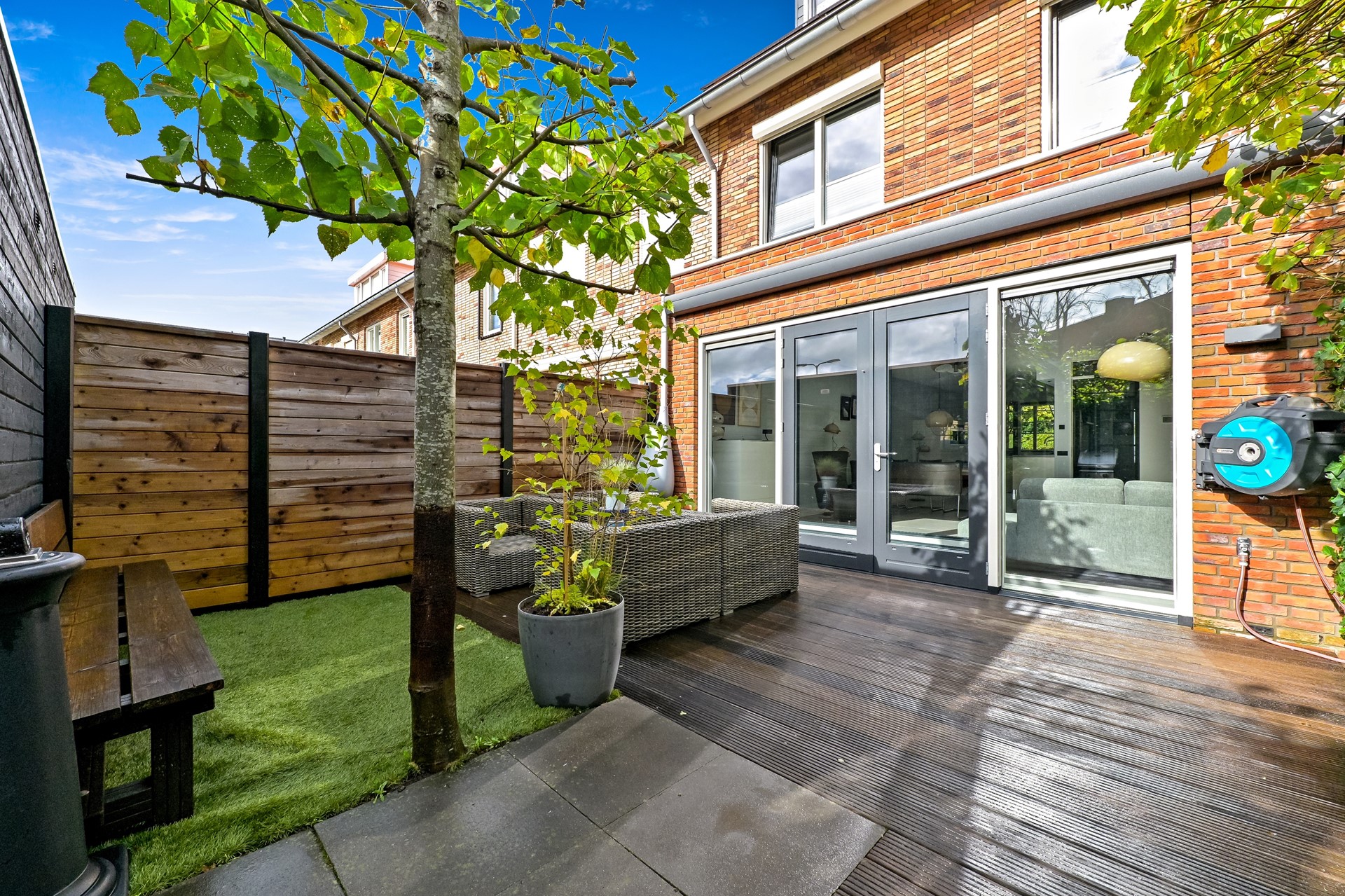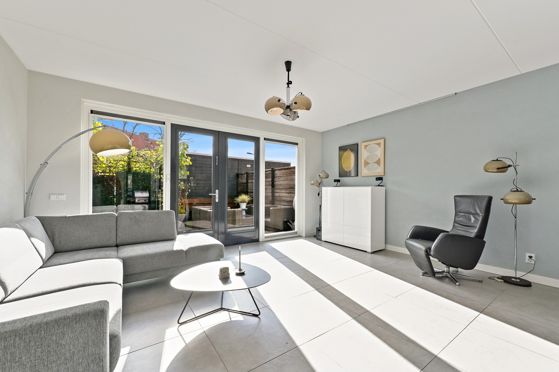 Via de voortuin bereik je de entree van de woning. In de hal bevindt zich de meterkast en trapopgang naar de verdieping. De moderne toiletruimte is volledig betegeld en voorzien van een wandcloset en fonteintje. Vanuit de hal kom je uit in de lichte woonkamer met uitbouw en openslaande deuren aan de achterzijde. Onder de trap bevindt zich de trapkast; een ideale plek voor het opbergen van de stofzuiger of bijvoorbeeld huisraad. Aan de voorzijde van de woning is de moderne keuken in parallel opstelling te vinden. De keuken is praktisch en overzichtelijk in te delen dankzij de 1,2 meter brede lades. Bovendien is de keuken voorzien van een verdiept aanrecht en diverse hoogwaardige inbouwapparatuur, waaronder een vijf pits gaskookplaat met wokbrander, koel-vrieskast, RVS afzuigkap, combi-magnetron, koffiemachine, vaatwasser en Quooker. De begane grond is modern afgewerkt en voorzien van een moderne tegelvloer met vloerverwarming. Vanuit de woonkamer is de zonnige, op het zuiden gelegen achtertuin met elektrisch bedienbare zonwering, buitenkraan, houten berging en achterom te bereiken. Een fijne plek waar je in de gehele dag heerlijk van de zon kunt genieten! Op het achtergelegen parkeerterrein zijn voldoende openbare parkeerplaatsen te vinden.