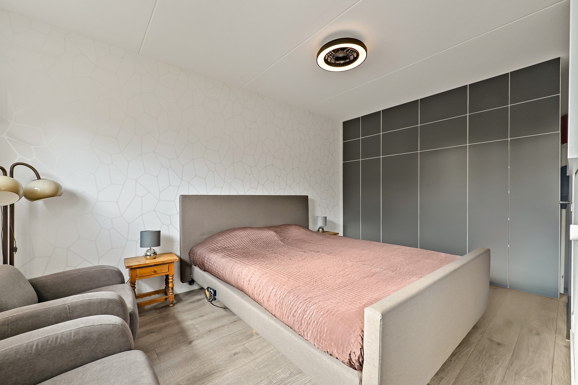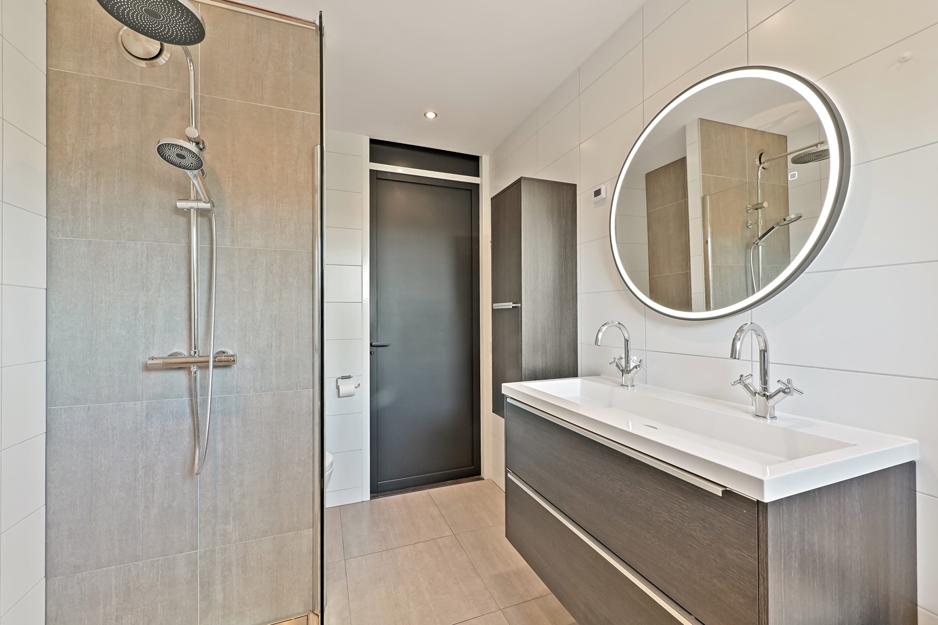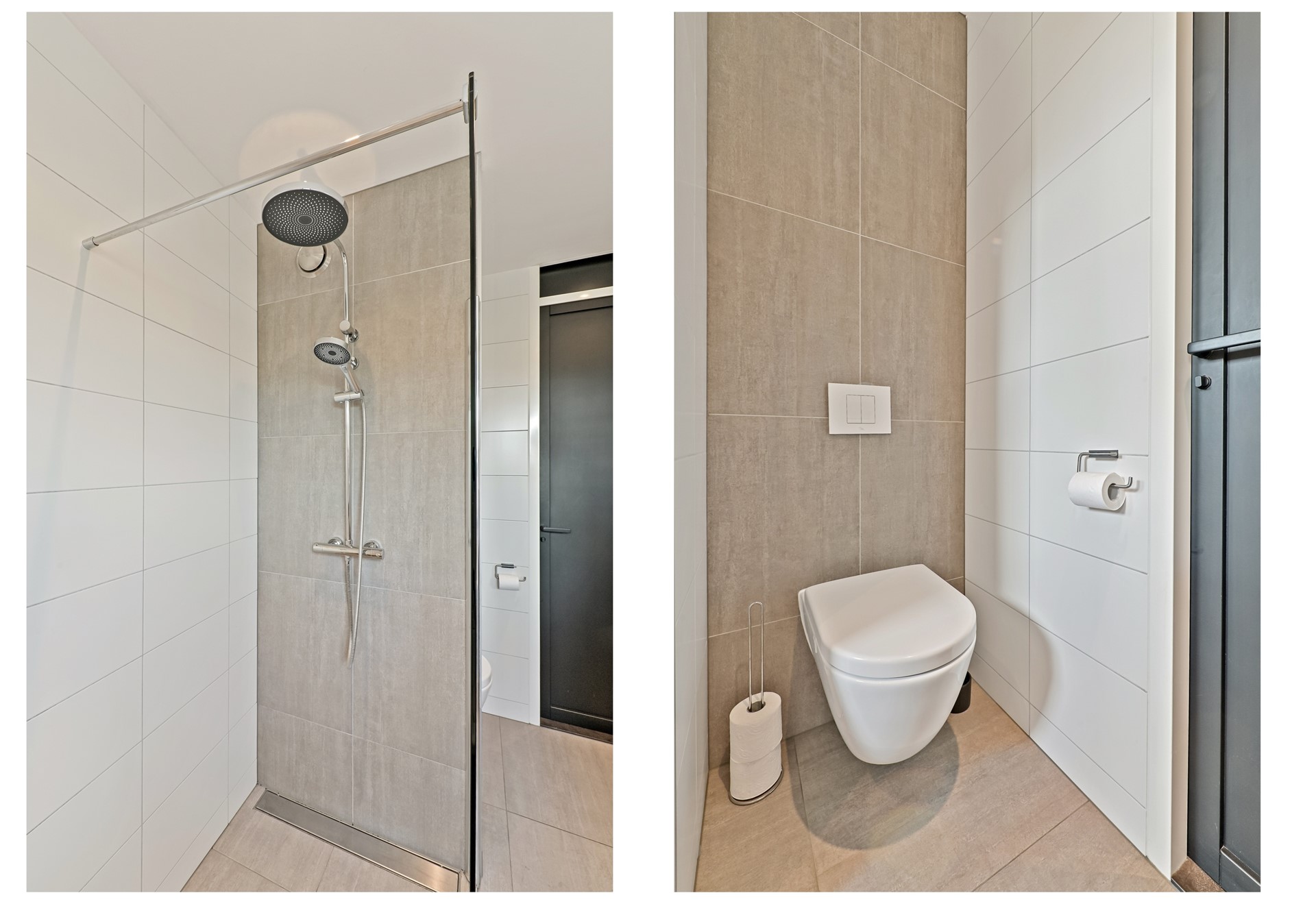 Ruime overloop met trapopgang naar de tweede verdieping. Op deze woonlaag zijn twee ruime slaapkamers te vinden. De master bedroom met kastenwand en elektrische rolluiken bevindt zich aan de achterzijde en grenst aan een ruime walk-in closet. Indien gewenst kan deze grote slaapkamer weer worden gesplitst in twee aparte slaapkamers. Aan de voorzijde is de tweede slaapkamer te vinden. Deze kamer is voorzien van een kamerhoog kozijn, inclusief rolluiken, waardoor de ruimte aangenaam licht aanvoelt. Naast deze slaapkamer vindt je de moderne badkamer. De badkamer is, ook met rolluiken, stijlvol afgewerkt en voorzien van een inloopdouche, ligbad, wastafelmeubel, handdoekradiator en tweede toilet.