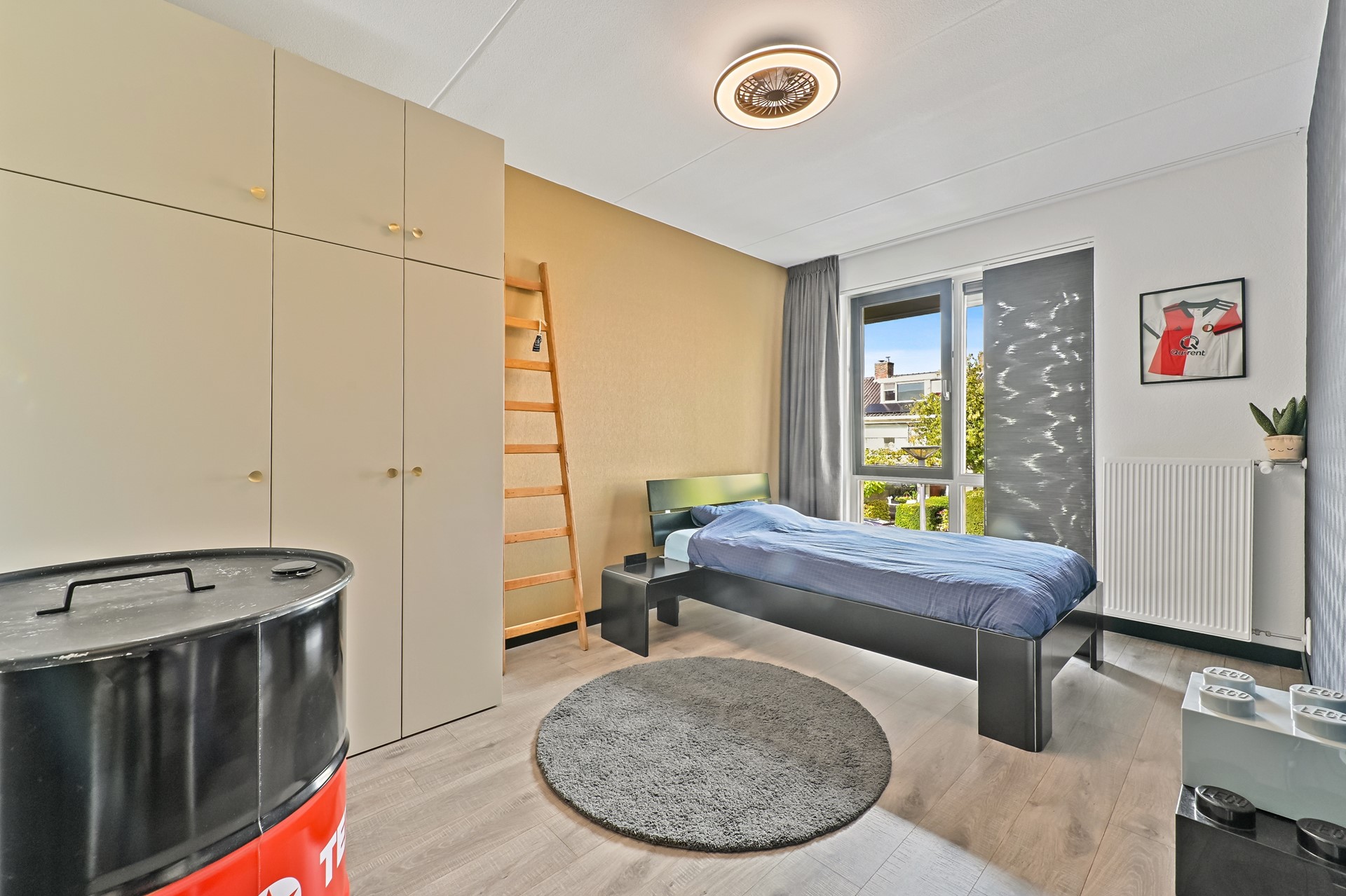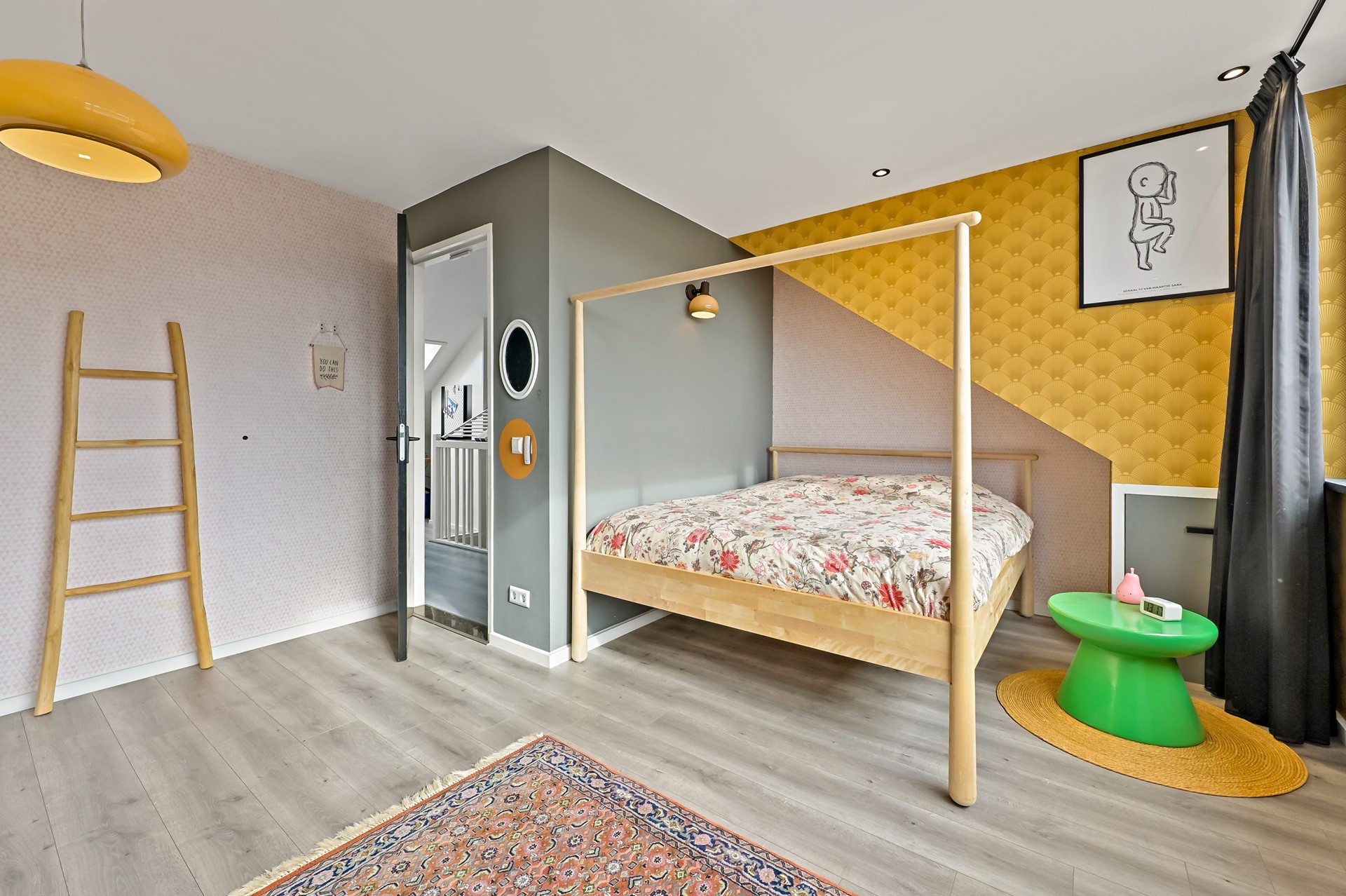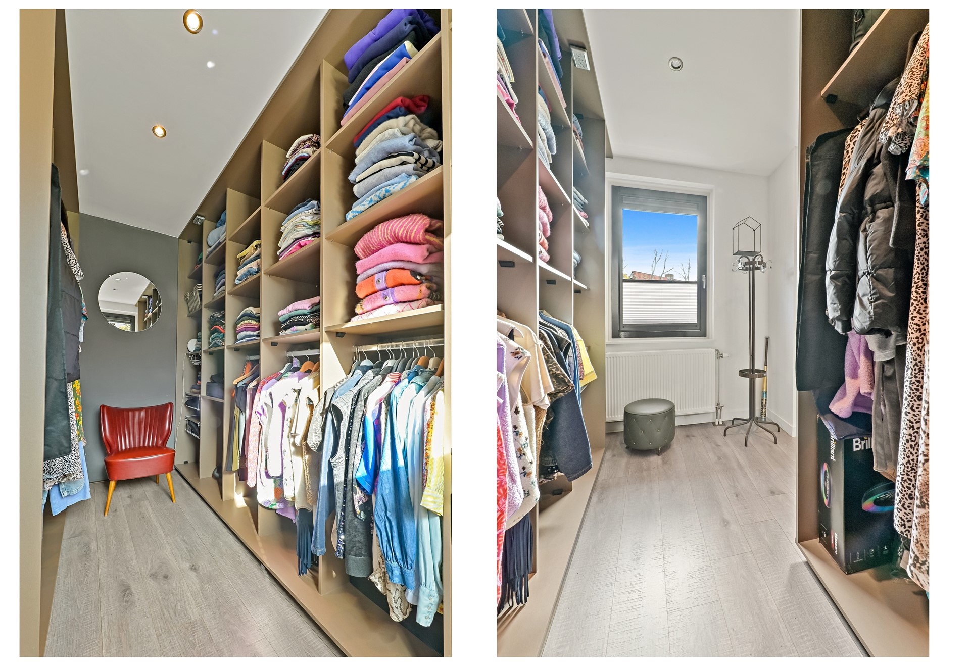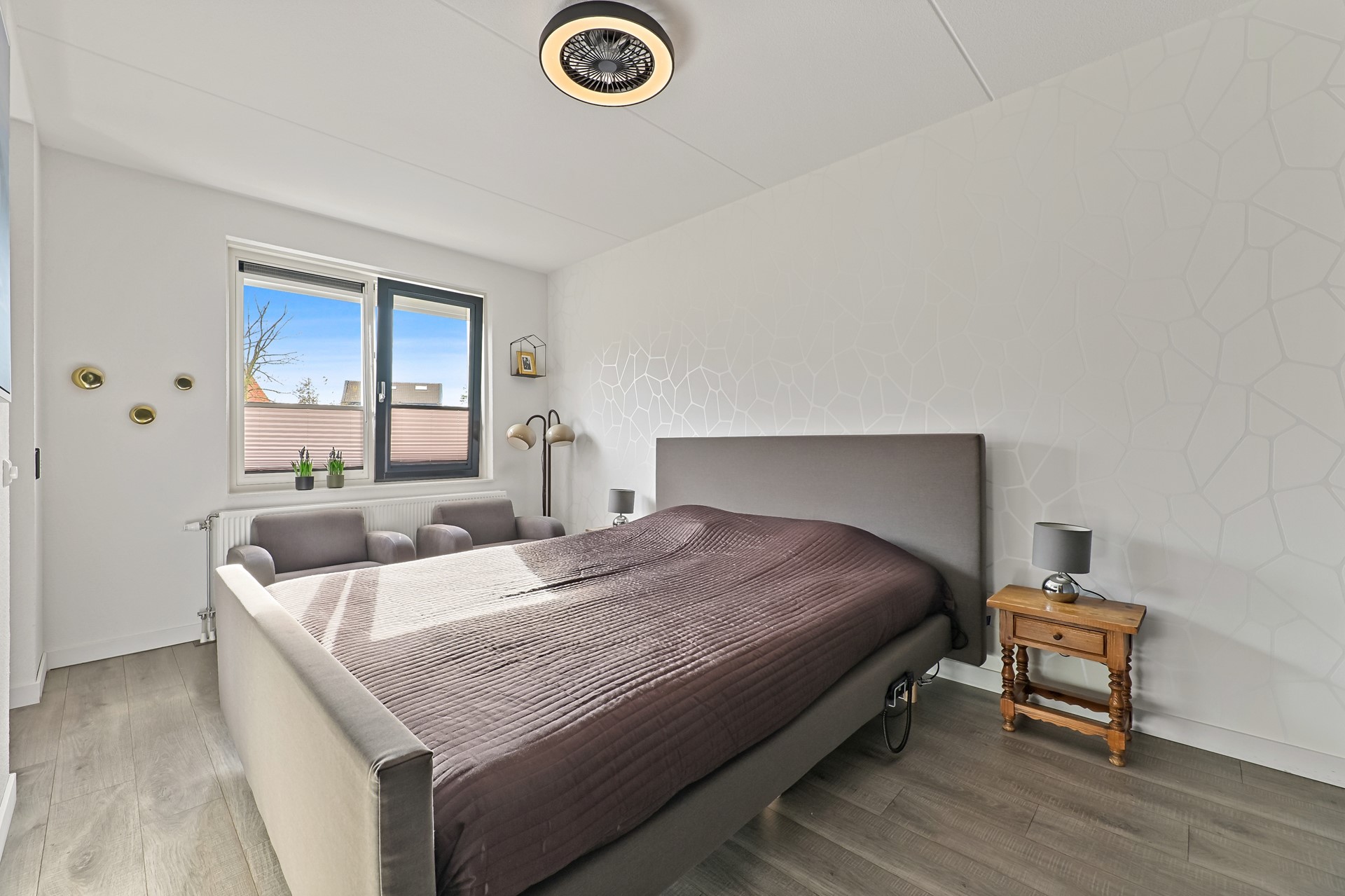 Ruime overloop met trapopgang naar de tweede verdieping. Op deze woonlaag zijn twee ruime slaapkamers te vinden. De master bedroom met kastenwand en elektrische rolluiken bevindt zich aan de achterzijde en grenst aan een ruime walk-in closet. Indien gewenst kan deze grote slaapkamer weer worden gesplitst in twee aparte slaapkamers. Aan de voorzijde is de tweede slaapkamer te vinden. Deze kamer is voorzien van een kamerhoog kozijn, inclusief rolluiken, waardoor de ruimte aangenaam licht aanvoelt. Naast deze slaapkamer vindt je de moderne badkamer. De badkamer is, ook met rolluiken, stijlvol afgewerkt en voorzien van een inloopdouche, ligbad, wastafelmeubel, handdoekradiator en tweede toilet.