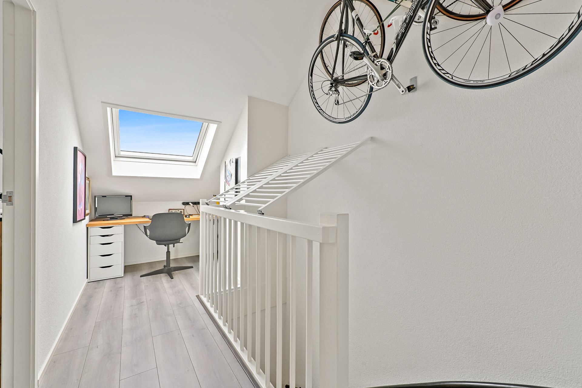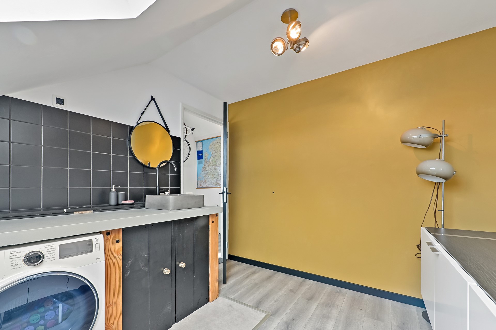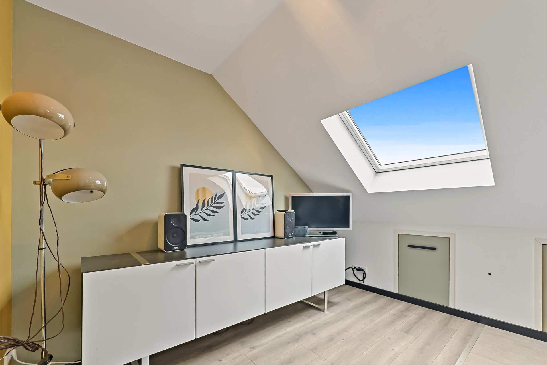 Op de tweede verdieping is een ruime overloop te vinden welke is voorzien van een groot dakraam en bergruimte. De overloop is op dit moment in gebruik als een kantoorruimte aan huis. Vanaf de overloop heb je toegang tot de derde slaapkamer aan de achterzijde. Deze L-vormige kamer is voorzien van grote kunststof dakkapel met rolluiken en beschikt over veel bergruimte achter de knieschotten. De wasruimte aan de voorzijde is zeer fraai afgewerkt. De opstelplaats voor de wasmachine en wasdroger is voorzien van een mooie ombouw met spoelbak en kastruimte. Bovendien is er onder het grote dakraam wederom veel bergruimte te vinden achter de knieschotten. In de nok van de 2e verdieping is een extra bergruimte gecreëerd inclusief verlichting.