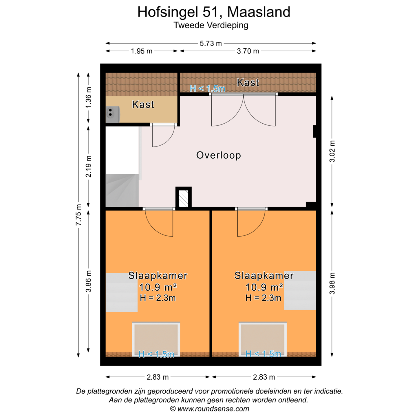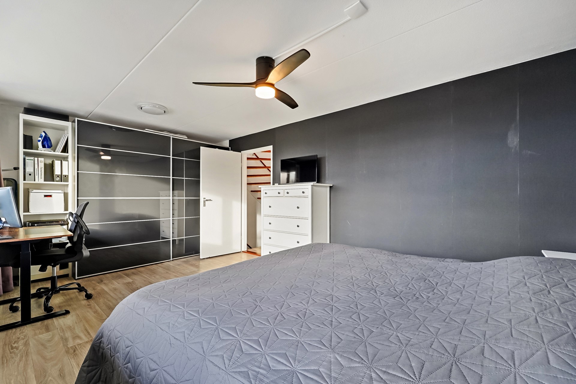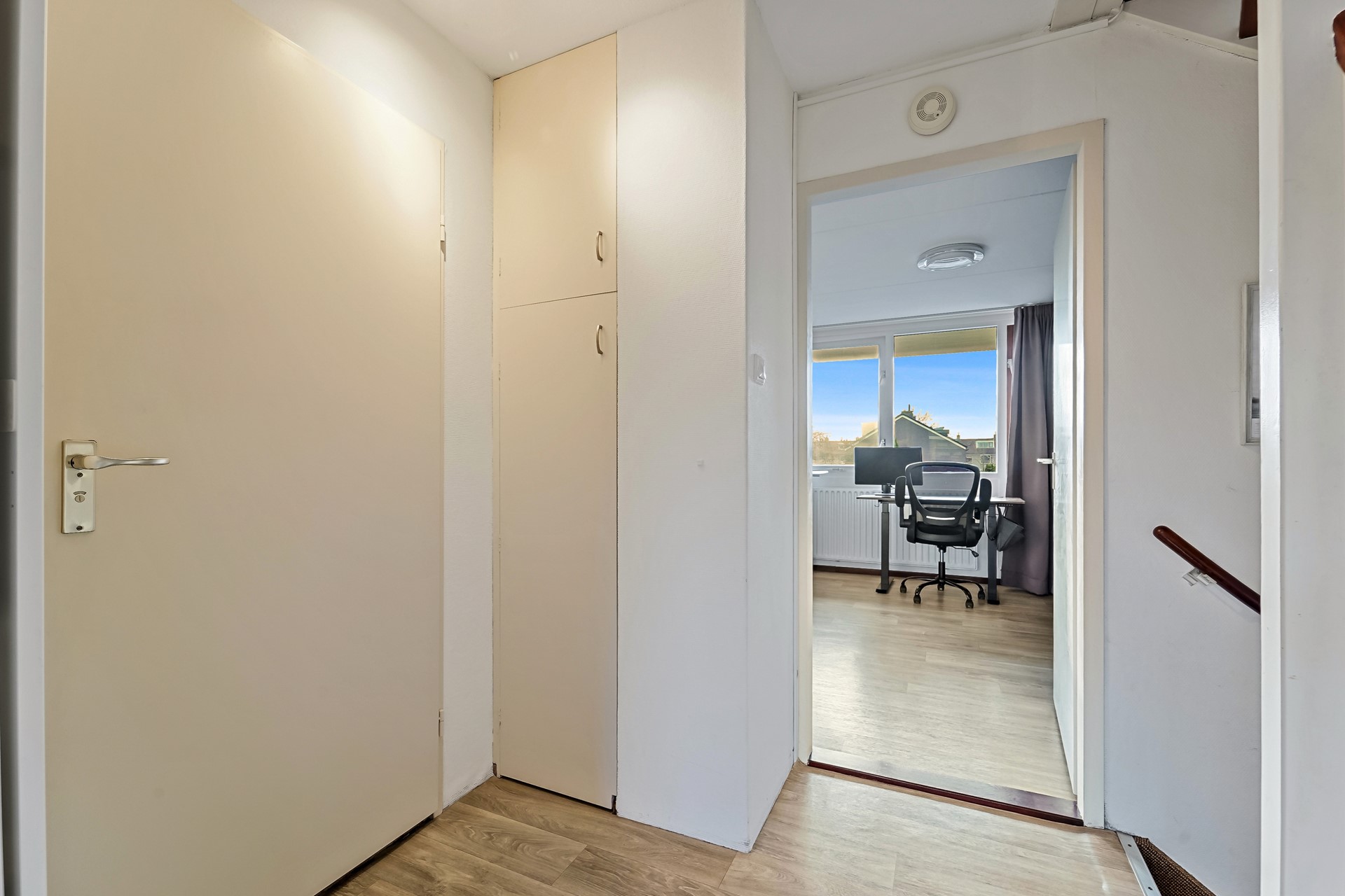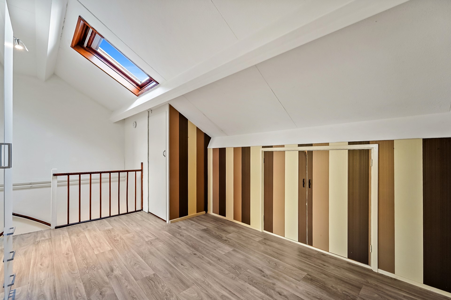 De tweede verdieping van deze woning is echt een volwaardige verdieping met twee grote slaap- annex werkkamers en een overloop met veel bergruimte. Beide slaap-/werkkamers beschikken over een Velux dakraam en dankzij de hoge nok van deze woning is de vide optimaal benut. Dankzij de vaste trappen zijn hier leuke slaapruimtes van gemaakt. Er is veel bergruimte onder het schuine gedeelte aan de achterzijde van de woning.