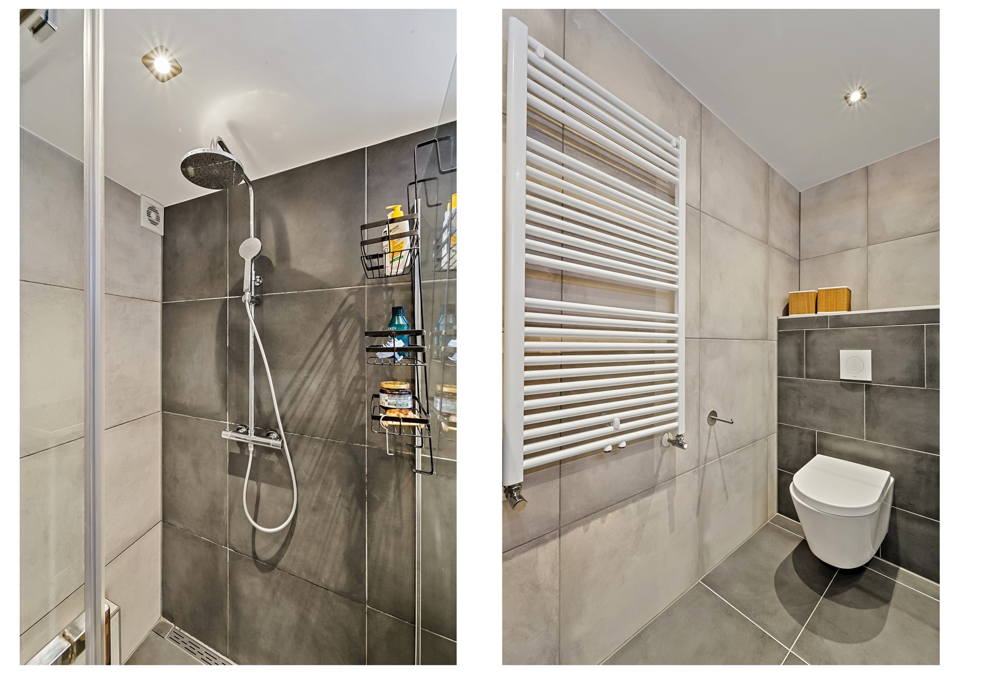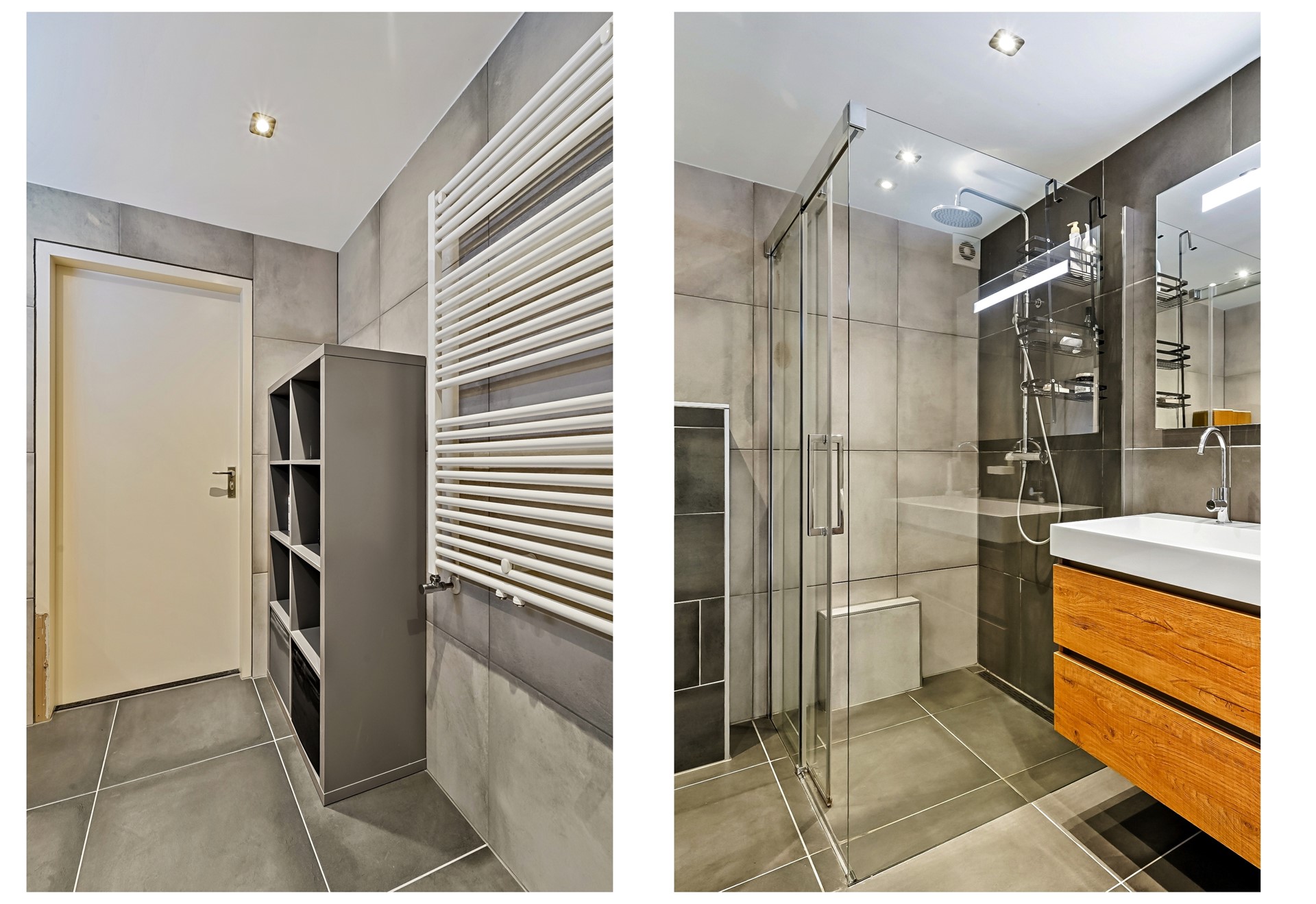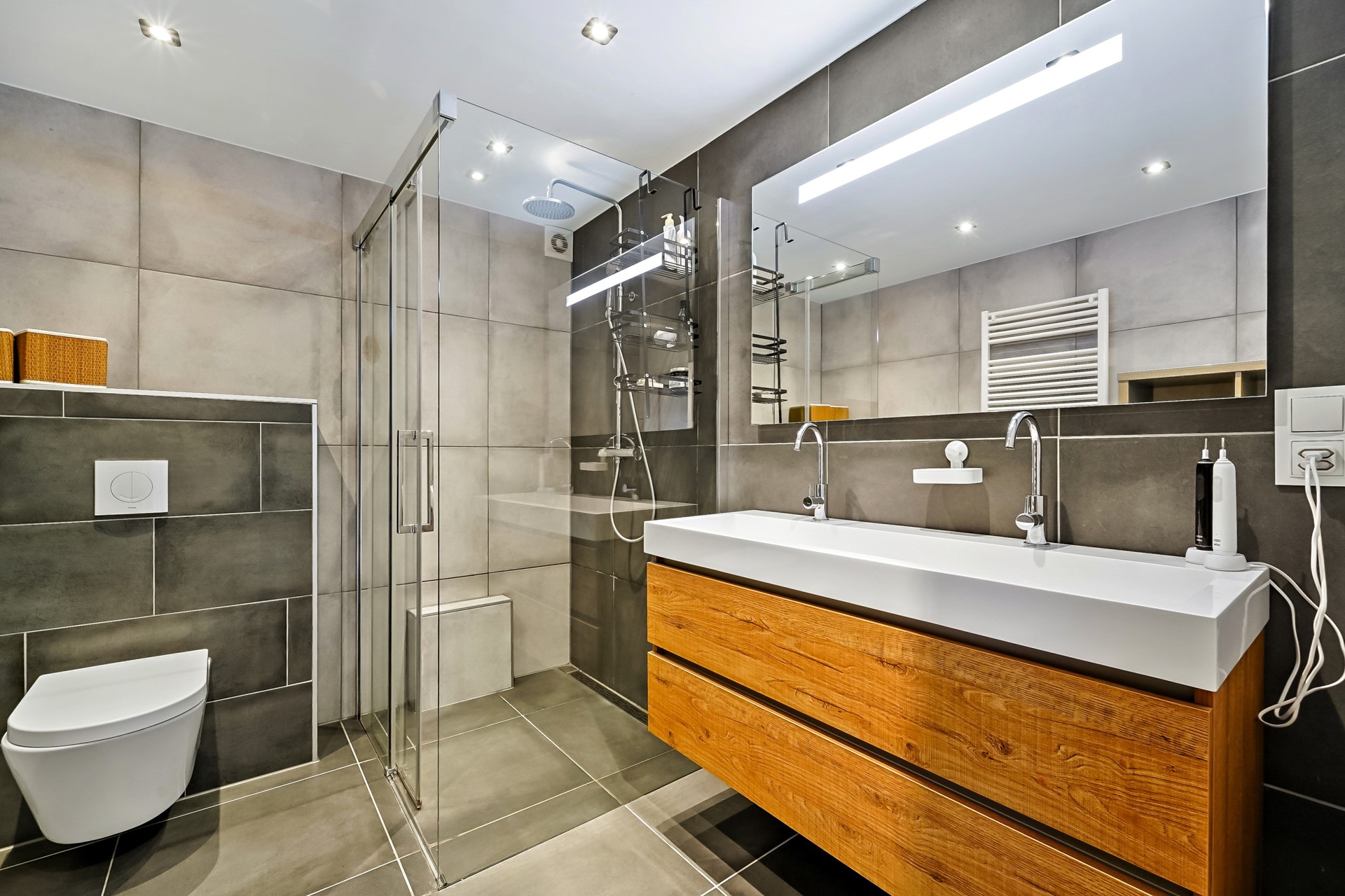 | Badkamervoorzieningen | Dubbele wastafel, Inloopdouche, Toilet, Wastafelmeubel |