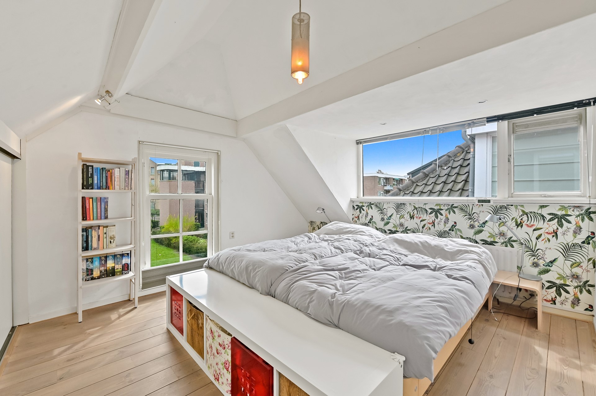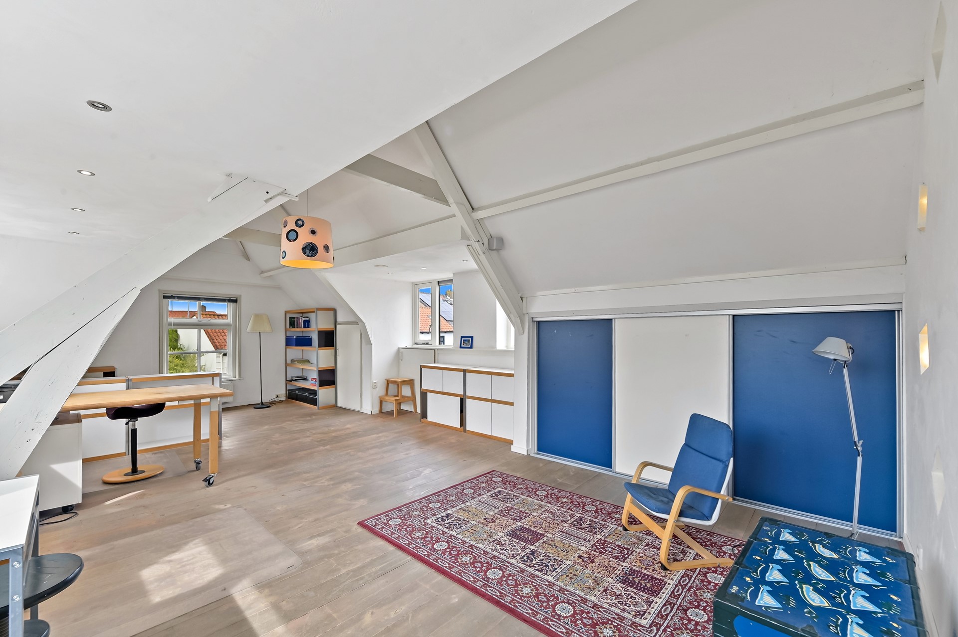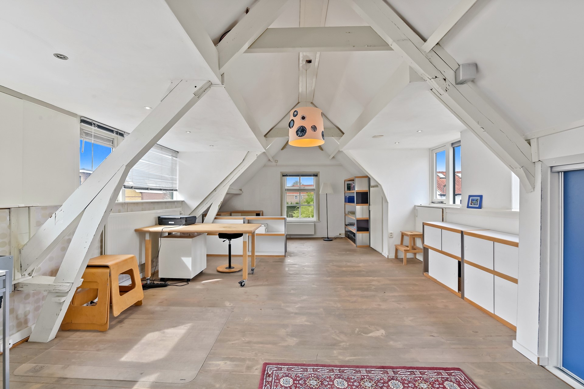 Deze verdieping is ruim opgezet. Er bestaan diverse mogelijkheden om eventueel extra kamers te realiseren. Als we bovenkomen valt direct op dat er veel licht binnenkomt op deze verdieping. Er is een dakkapel met een dakraam aanwezig. Op de overloop is een tweede toilet aanwezig en er is een wastafel gemaakt met warm en koud water. Aan de voorzijde van de woning bevindt zich een slaapkamer. Hier zijn diverse kasten gemaakt onder het schuine gedeelte van de kap. Aan de achterzijde van de woning bevindt zich een zeer grote ruimte (28 m2) welke op diverse manieren kan worden gebruikt. De hoge nok geeft een ruimtelijk gevoel en ook hier komt veel licht de woning binnen dankzij de zijramen in de dakkapel. Er is voldoende bergruimte in de vaste kasten. Aan zowel de voor- als achterzijde van de woning is het uitzicht erg fraai.