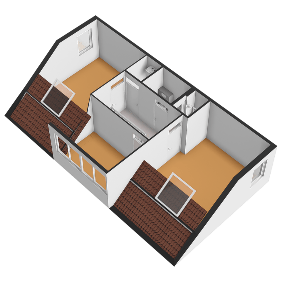 Overloop met toegang tot de slaapkamers en de badkamer. Dankzij de kapconstructie valt in de hoofdslaapkamer direct de enorm hoge nok op. Dit geeft een heerlijk ruimtelijk gevoel in deze kamer. Deze kamer beschikt over een Velux dakraam en een airco. De luxe badkamer is centraal in het huis geplaatst en beschikt over een inloopdouche, wastafel en een tweede toilet. De badkamer is geheel betegeld met marmerlook tegels en de vloer is comfortabel warm dankzij de vloerverwarming. In de badkamer is een kleiner dakraam aanwezig en zorgt voor voldoende lichtinval en mogelijkheid tot ventilatie. Naast de badkamer is een ruime kast met aansluitingen voor wasmachine en droger. In de achterste slaapkamer is een vliering en extra bergruimte onder het knieschot aangebracht. De derde slaapkamer is aan de voorzijde van de woning gelegen. Deze kamer beschikt over een grote dakkapel en is daarmee lekker licht. Eveneens beschikt deze kamer over een elektrisch bedienbaar rolluik, waarmee de kamer zeer goed kan worden verduisterd.