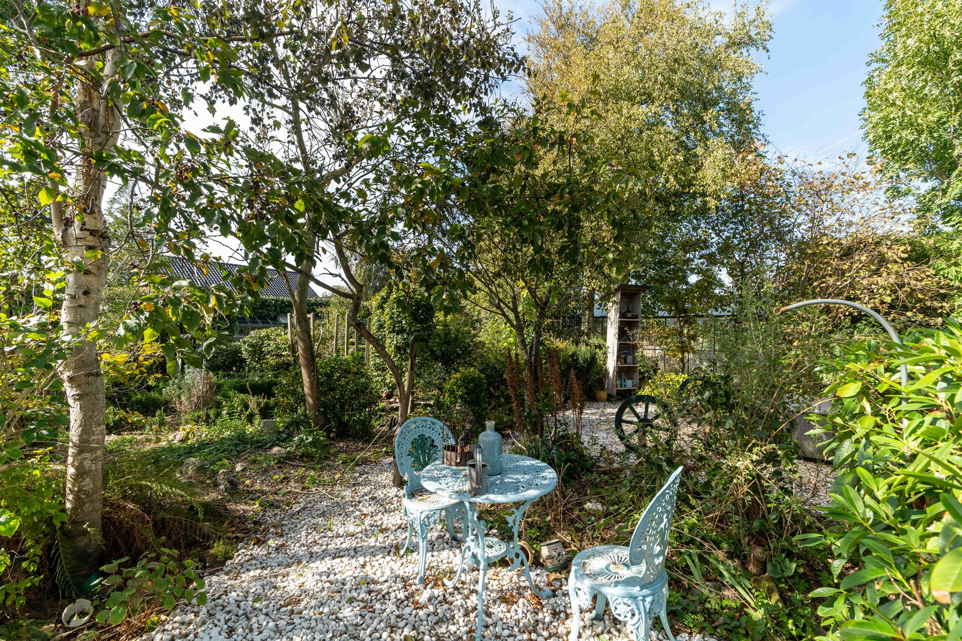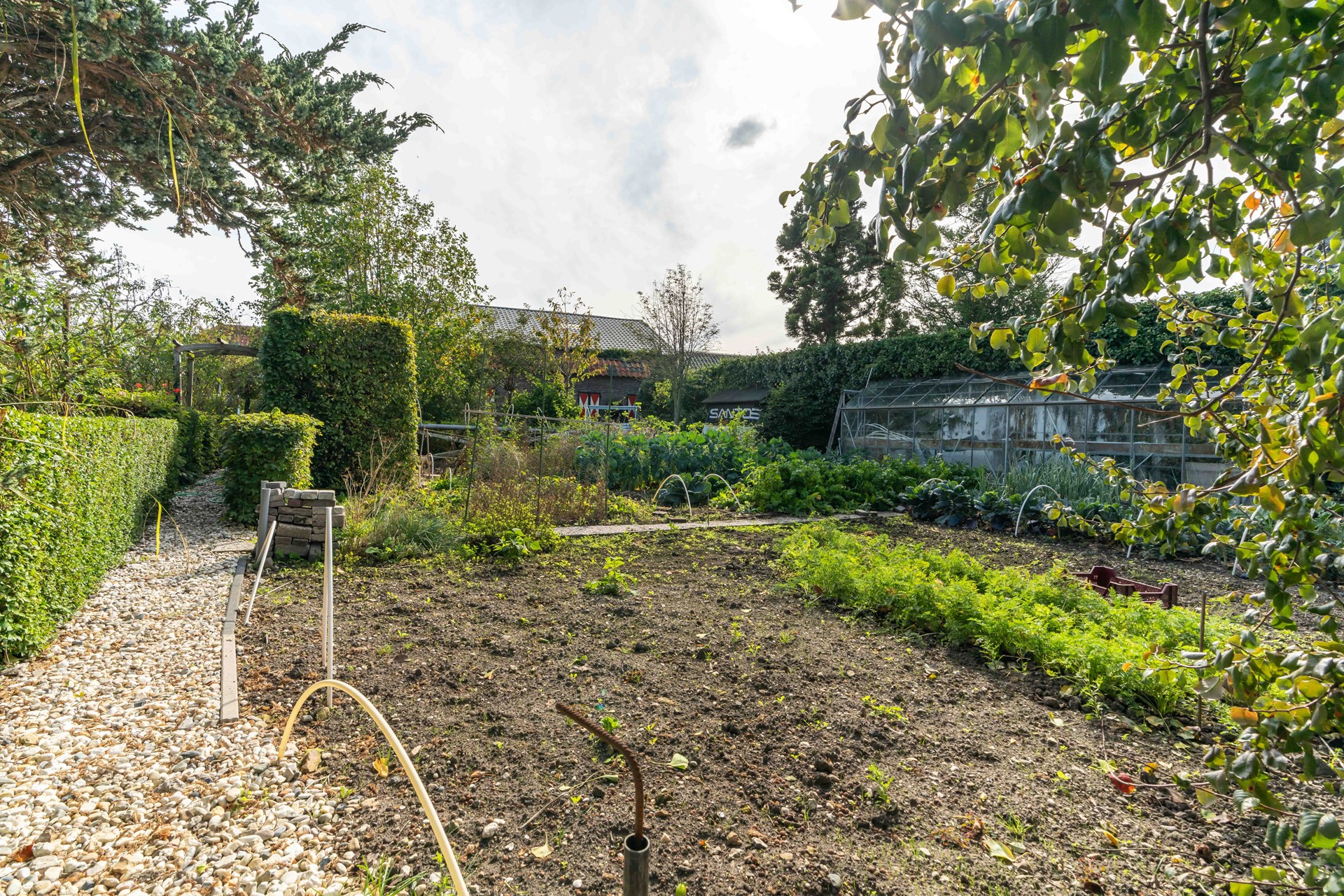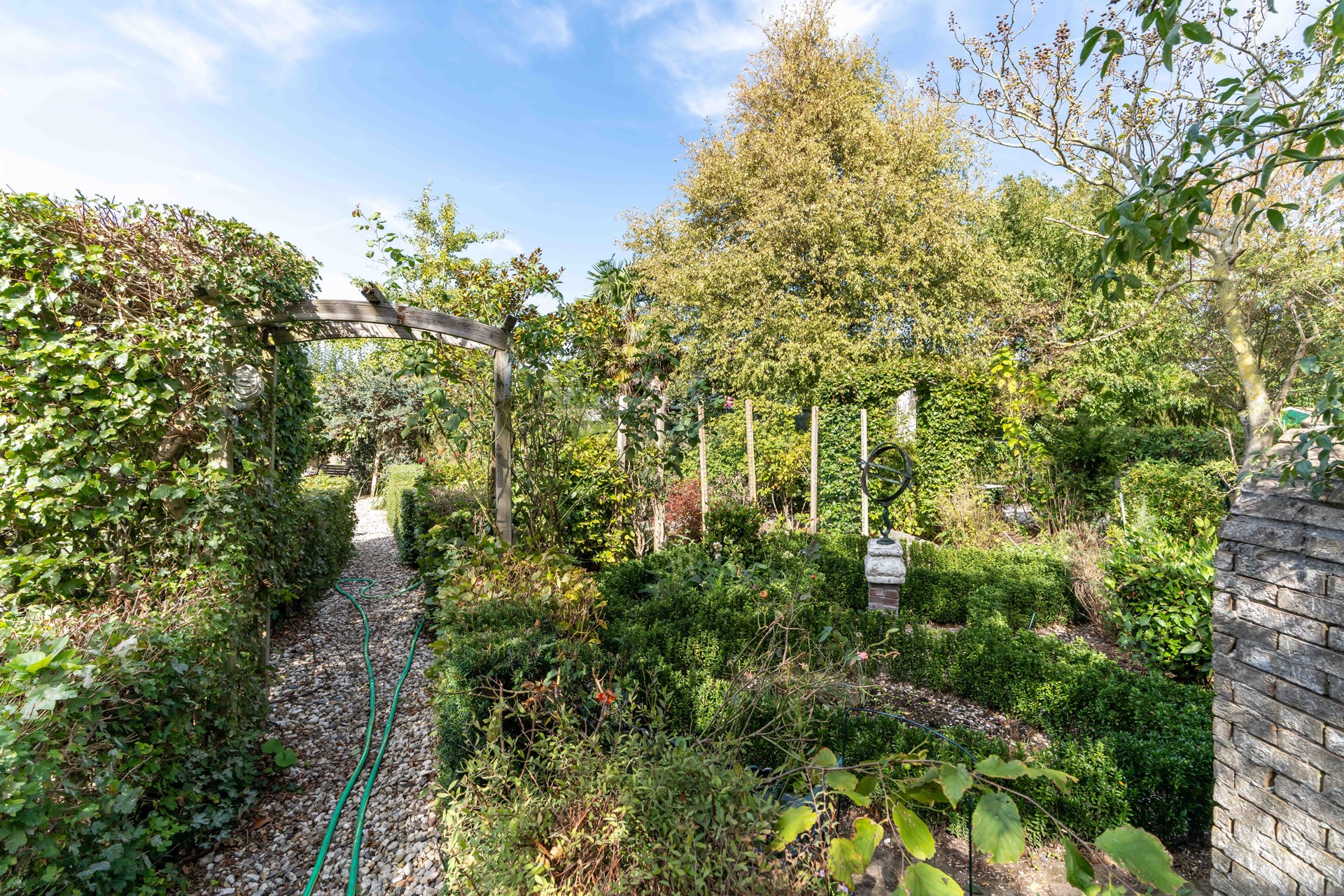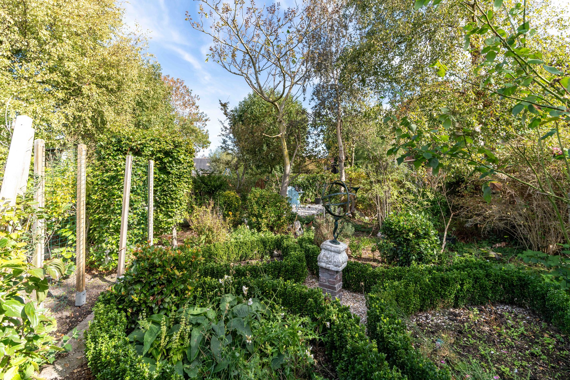 Aan de achterzijde van de woning begint de tuin. De tuin is zeer ruim en bied alle ruimte om te genieten van het buitenleven. Een prachtig aangelegde siertuin met diverse beplanting, een ruime moestuin voor oogst uit eigen tuin en voldoende parkeergelegenheid op eigen terrein. In de tuin zijn een hobbykas en diverse prieeltjes aanwezig. Echt een tuin om te ontdekken en te genieten.