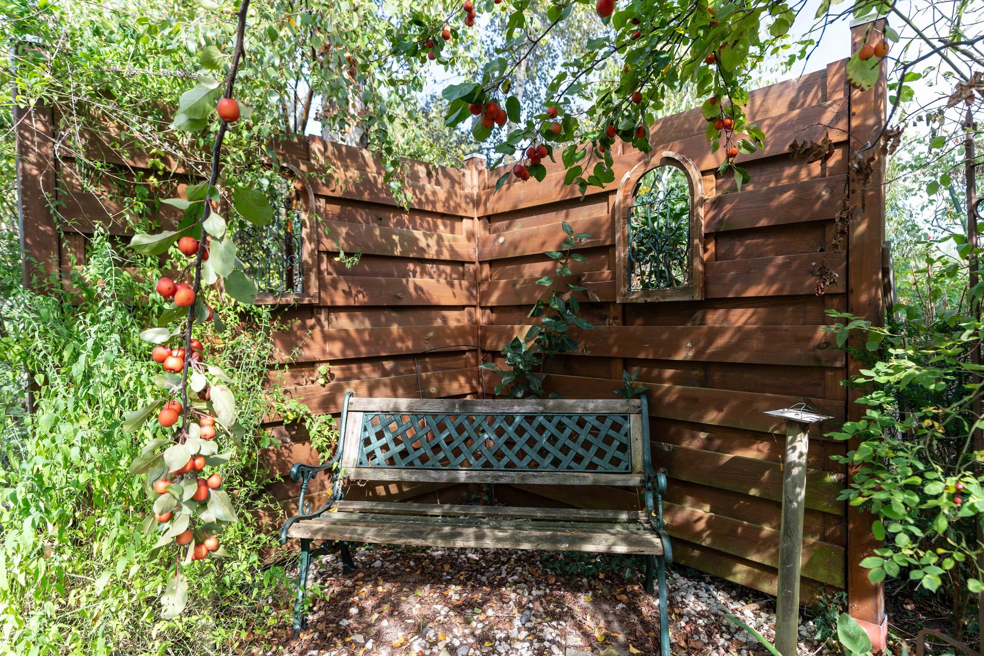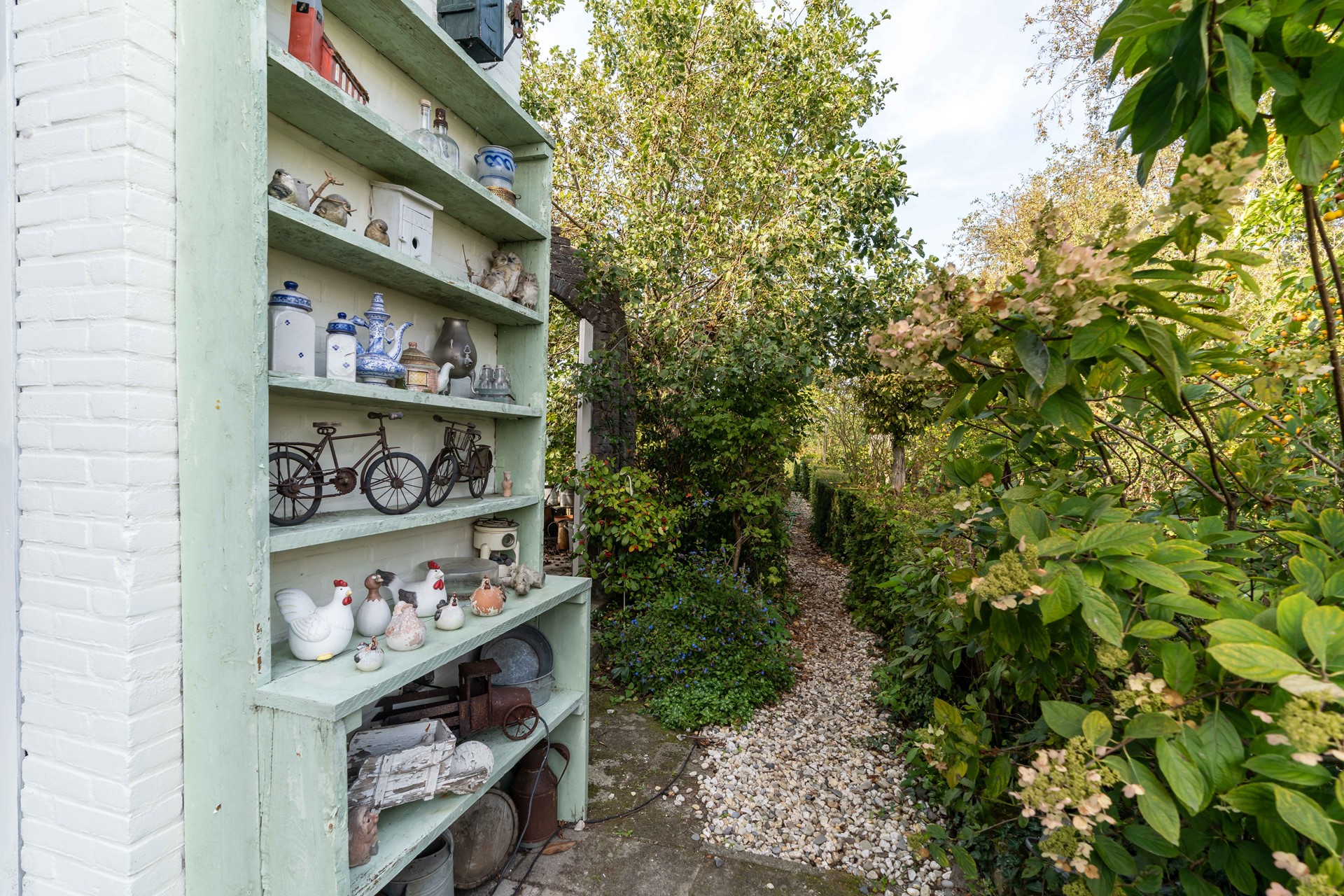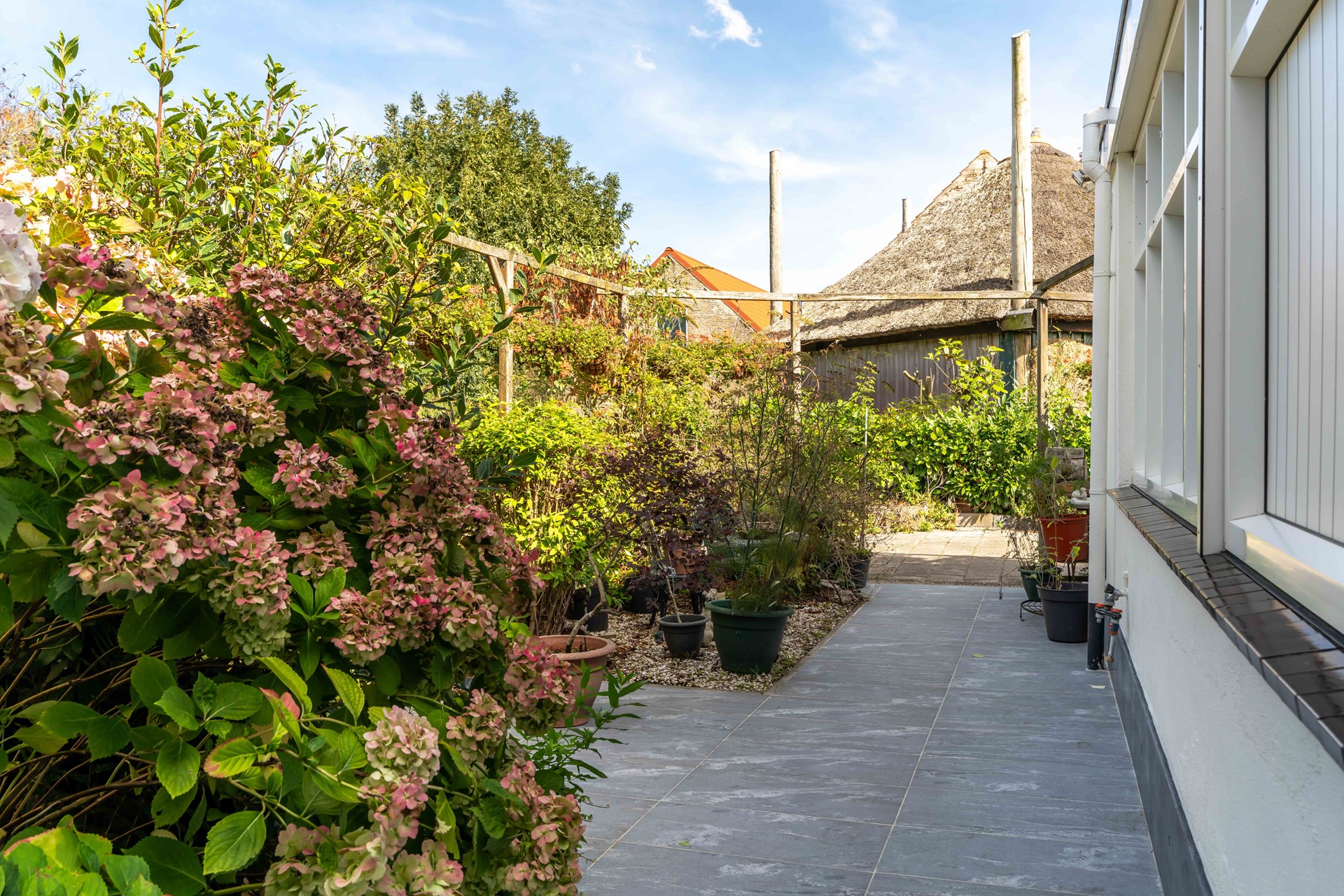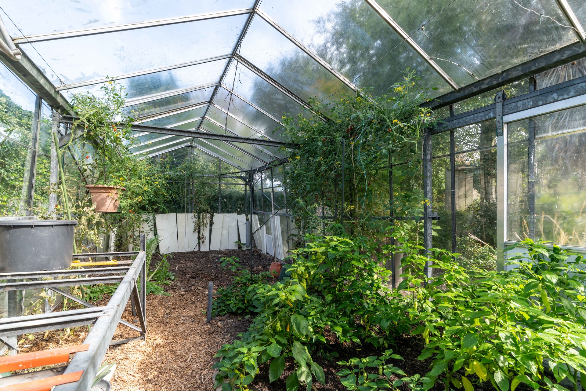 Aan de achterzijde van de woning begint de tuin. De tuin is zeer ruim en bied alle ruimte om te genieten van het buitenleven. Een prachtig aangelegde siertuin met diverse beplanting, een ruime moestuin voor oogst uit eigen tuin en voldoende parkeergelegenheid op eigen terrein. In de tuin zijn een hobbykas en diverse prieeltjes aanwezig. Echt een tuin om te ontdekken en te genieten.