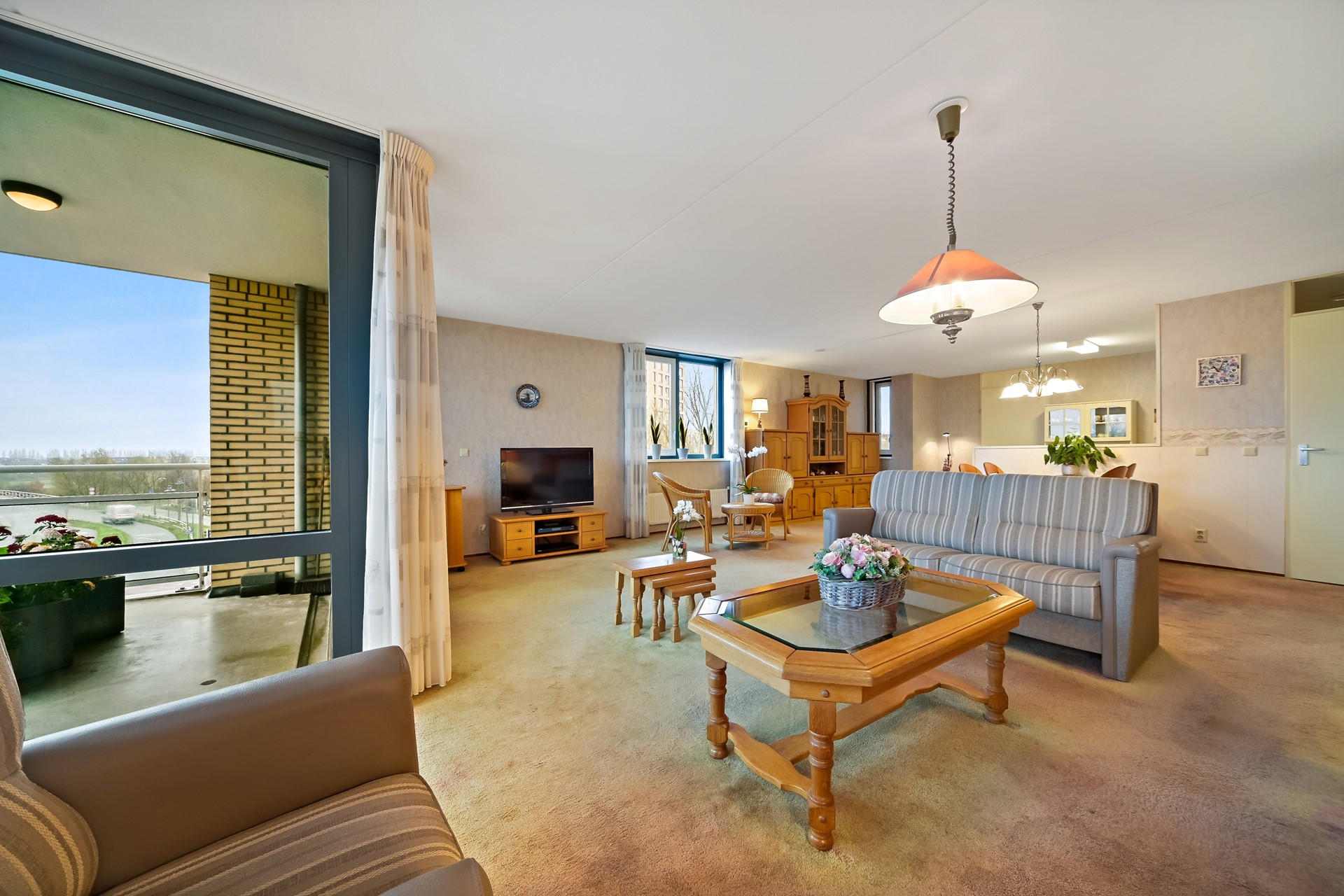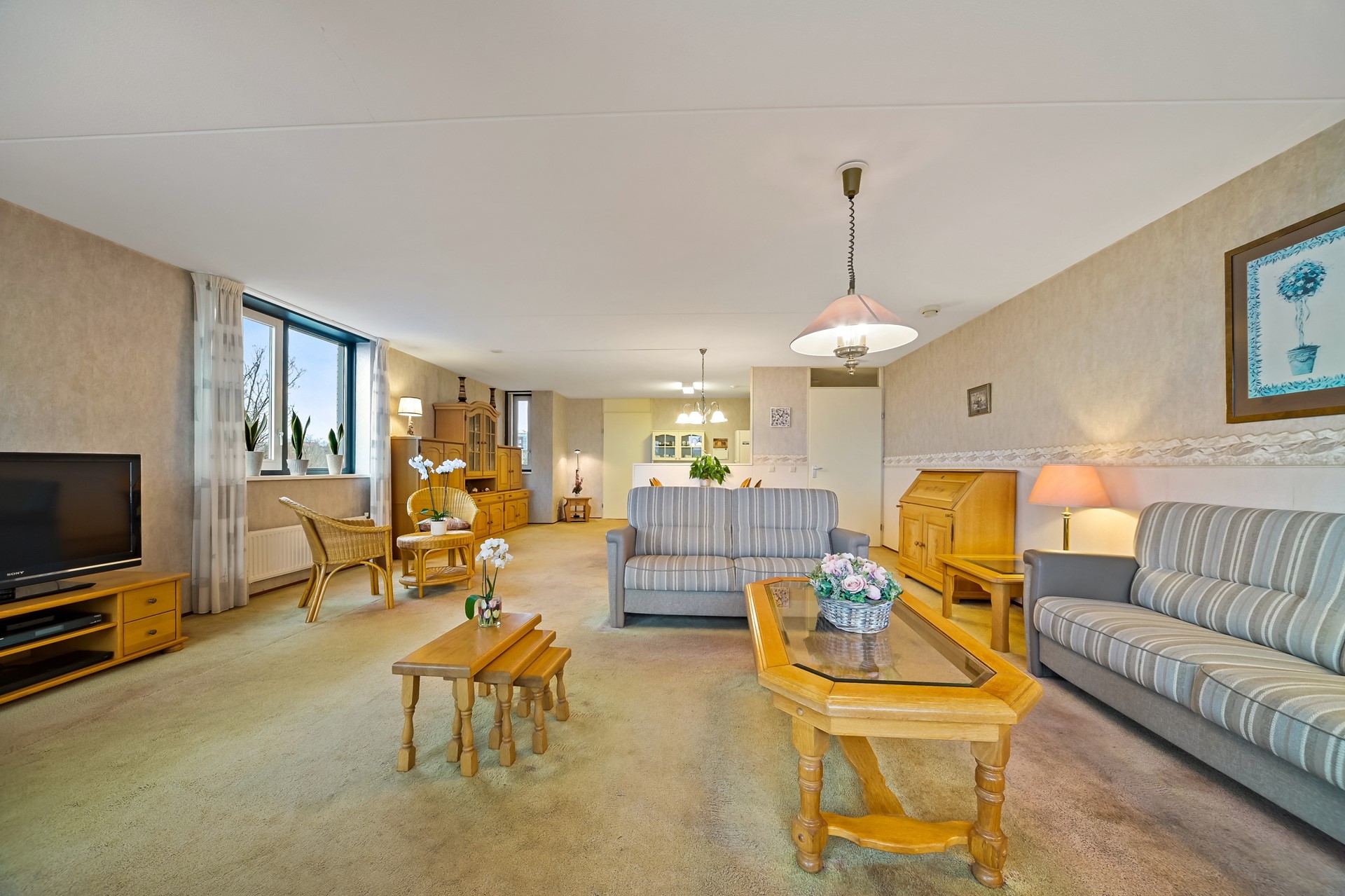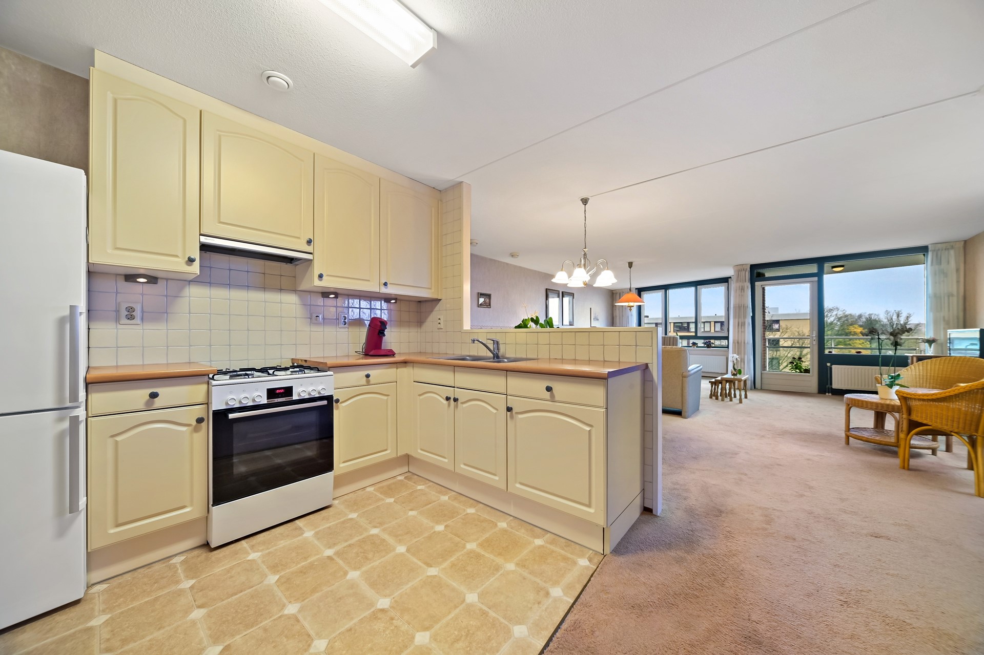 Entree van de woning met L-vormige gang/hal met meterkast. Geheel betegeld toilet met fonteintje. Bergruimte met opstelplaats CV combiketel. Aan de voorzijde van de woning bevindt zich de riante woonkamer met aangrenzend balkon en een levendig uitzicht. Dankzij de zijramen en de half open keuken voelt het appartement nog ruimer aan. Aan de voorzijde bevindt zich het deels overdekte balkon. De woonkamer is op diverse manieren in te delen. De keuken bevindt zich op een centrale plek in de woning. De keuken is netjes maar eenvoudig, opgesteld in een L-vorm en voorzien van enkele apparatuur. Achter de keuken bevindt zich een praktische berging/bijkeuken. Via de centrale gang komen we bij de ruime badkamer. De badkamer beschikt over een ligbad, een separate doucheruimte en een wastafel. De badkamer is tot aan het plafond betegeld. Tegenover de badkamer bevindt zich een afgesloten wasruimte met opstelplaats voor wasmachine en droger. Aan de achterzijde van het appartement zijn de slaapkamers gesitueerd. Oorspronkelijk waren hier drie slaapkamers, maar de huidige eigenaar heeft er voor gekozen om twee grote kamers te maken. De hoofdslaapkamer is daarmee maar liefst 25 m2 groot geworden. Eventueel bestaat de mogelijkheid om hier weer drie slaapkamers van te maken.
