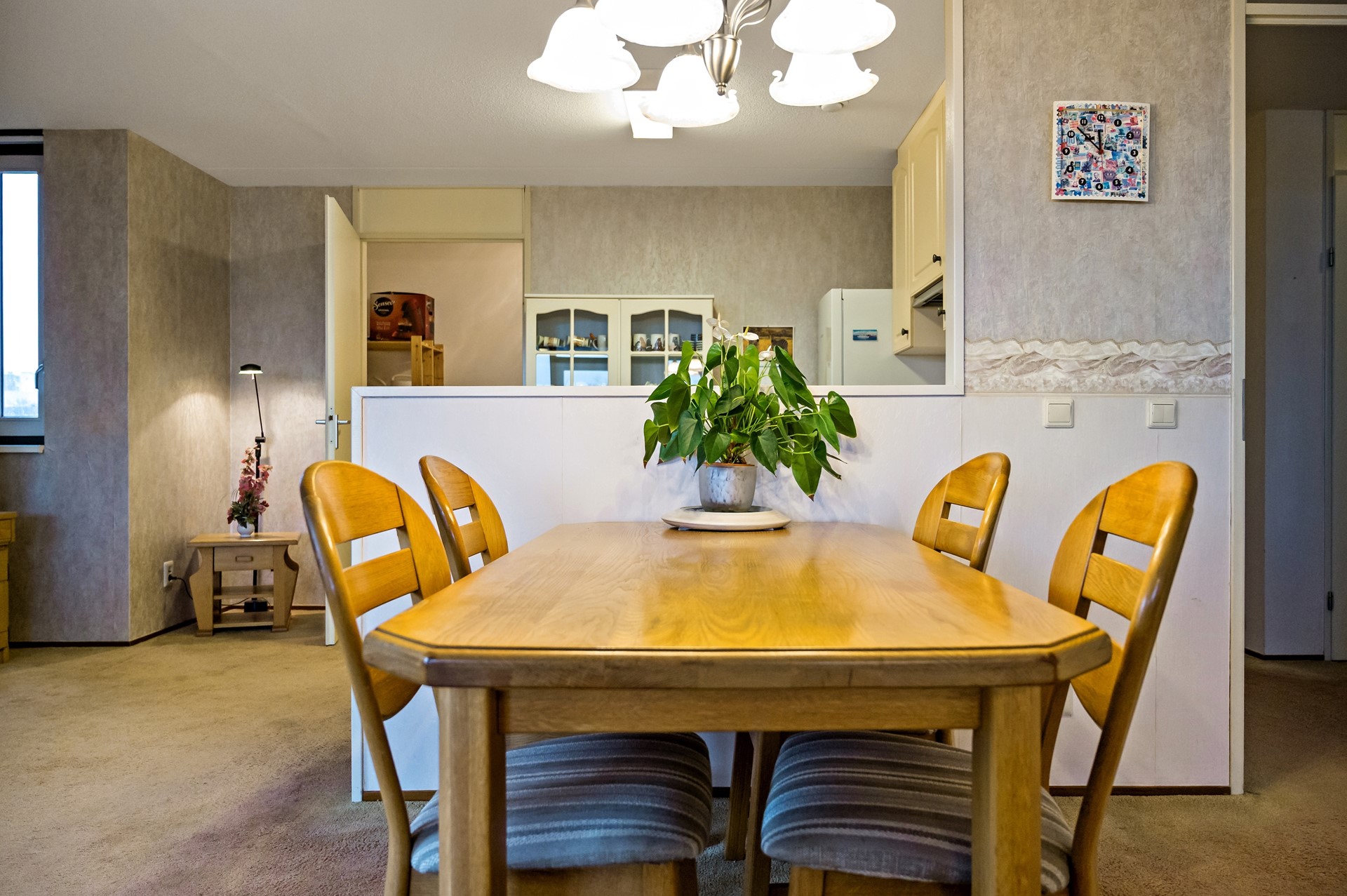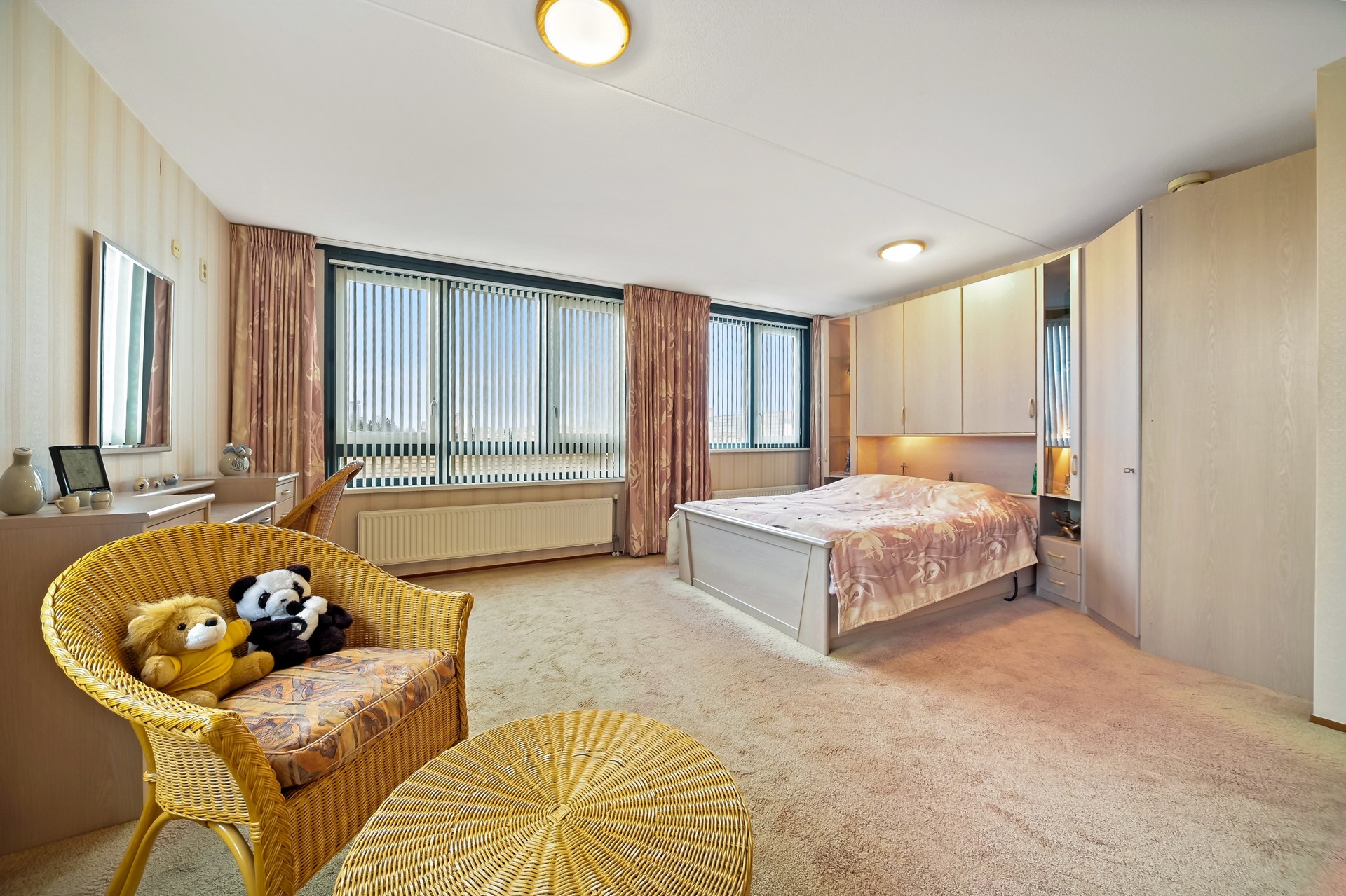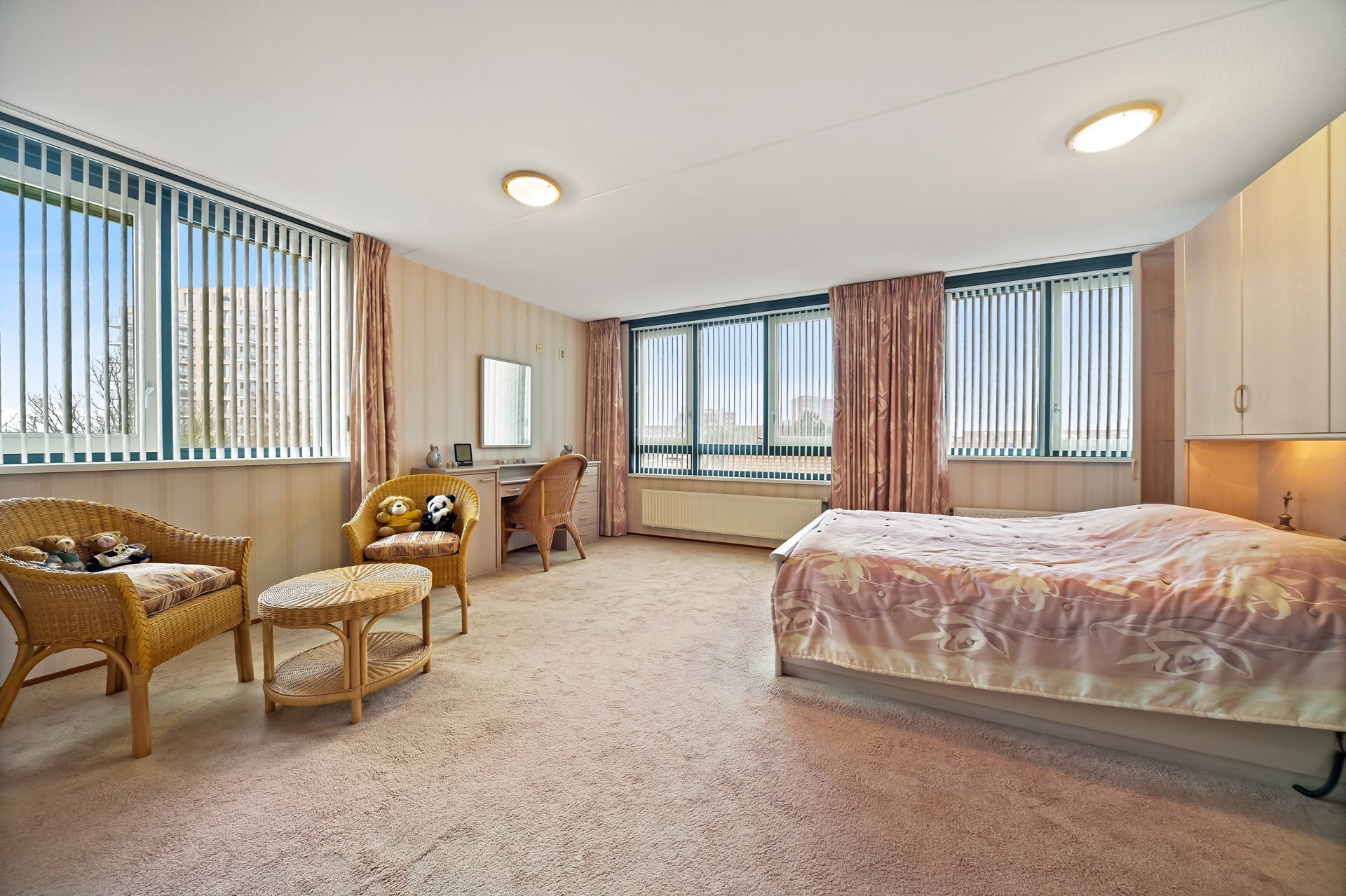Entree van de woning met L-vormige gang/hal met meterkast. Geheel betegeld toilet met fonteintje. Bergruimte met opstelplaats CV combiketel. Aan de voorzijde van de woning bevindt zich de riante woonkamer met aangrenzend balkon en een levendig uitzicht. Dankzij de zijramen en de half open keuken voelt het appartement nog ruimer aan. Aan de voorzijde bevindt zich het deels overdekte balkon. De woonkamer is op diverse manieren in te delen. De keuken bevindt zich op een centrale plek in de woning. De keuken is netjes maar eenvoudig, opgesteld in een L-vorm en voorzien van enkele apparatuur. Achter de keuken bevindt zich een praktische berging/bijkeuken. Via de centrale gang komen we bij de ruime badkamer. De badkamer beschikt over een ligbad, een separate doucheruimte en een wastafel. De badkamer is tot aan het plafond betegeld. Tegenover de badkamer bevindt zich een afgesloten wasruimte met opstelplaats voor wasmachine en droger. Aan de achterzijde van het appartement zijn de slaapkamers gesitueerd. Oorspronkelijk waren hier drie slaapkamers, maar de huidige eigenaar heeft er voor gekozen om twee grote kamers te maken. De hoofdslaapkamer is daarmee maar liefst 25 m2 groot geworden. Eventueel bestaat de mogelijkheid om hier weer drie slaapkamers van te maken.