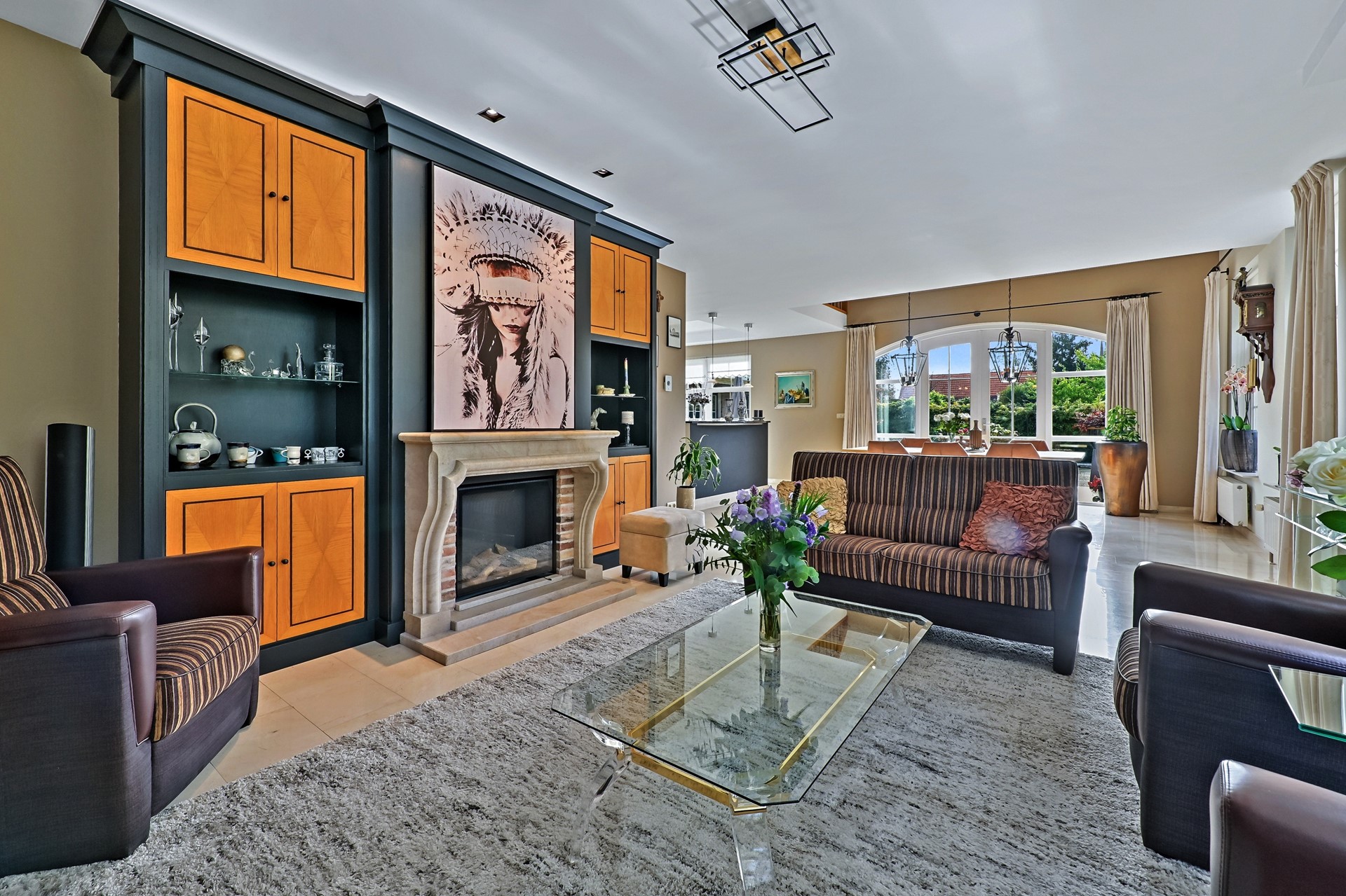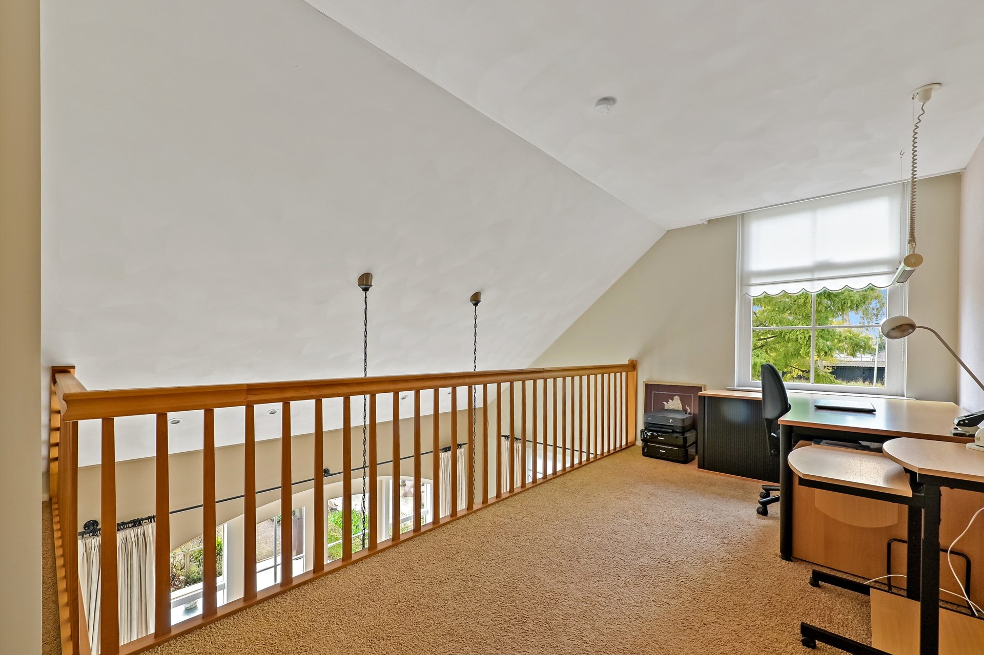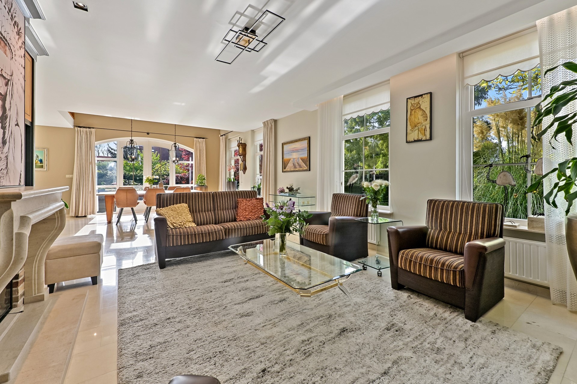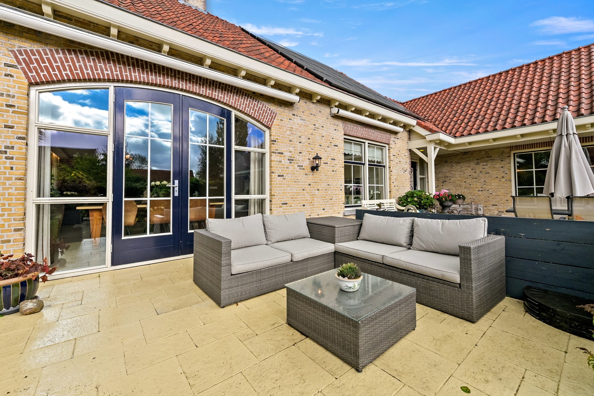 Via de eigen oprijlaan en verzorgd aangelegde tuin bereikt u de woning. Bij binnenkomst in de woning valt direct de unieke architectuur en royale opzet op. De woning is ontworpen met oog voor licht, zichtlijnen en ruimtelijkheid. Centraal in de woning bevindt zich het imposante trappenhuis, dat niet alleen functioneel is maar ook als architectonisch middelpunt fungeert en de verschillende vleugels van de woning met elkaar verbindt. Onder de trap is een inpandige vijver met Koikarpers aanwezig. Grenzend aan de hal bevindt zich de toiletruimte met wandcloset en fonteintje. Via de linkerzijde komt u in de royale woonkamer over de volledige breedte van de woning met open keuken. De in 2018 geplaatste keuken is luxe en voorzien van diverse inbouwapparatuur. Vanuit de woonkamer is de prachtige tuin met zonnig terras op het zuiden te bereiken via dubbele openslaande deuren. Met diverse grote ramen in de gevel komt er veel licht binnen. De woonkamer is voorzien van een lichte vloertegel met vloerverwarming en een gestukt plafond. In het zitgedeelte is een gasgestookte haard aanwezig met maatwerk kastenwand. Boven het eetgedeelte bevindt zich een fraaie vide, waardoor u nog meer ruimte en licht in het woongedeelte ervaart. De hoofdslaapkamer en badkamer zijn op de begane grond gelegen. De badkamer is luxe uitgevoerd en voorzien van een riante inloopdouche met sunshower en tweede toilet.. Vanuit de slaapkamer heeft u toegang tot de beschutte achtertuin. Via de hal komen we in het andere deel van de woning. Hier is de bijkeuken annex wasruimte van waar de achtertuin ook bereikbaar is. Via het achterpad is een extra berging te bereiken. De multifunctionele ruimte, welke veelal gebruikt is voor bijeenkomsten, feesten en partijen kan op diverse manieren in gebruik genomen worden. Er is zelfs een tweede badkamer met doucheruimte en toilet aanwezig. De open kap, met prachtige spantconstructie in het zicht, een open keuken en twee vides met bergruimte is voorzien van een warme plavuizen vloer met vloerverwarming. Centraal in de ruimte bevindt zich de houtkachel en via de dubbele deuren en meerdere raampartijen heeft u zicht op de sierlijke tuin. Naast de ruimte bevindt zich de inpandige, geïsoleerde garage met water en verwarming. De garage is afgesloten met een loopdeur en een elektrische overheaddeur.
