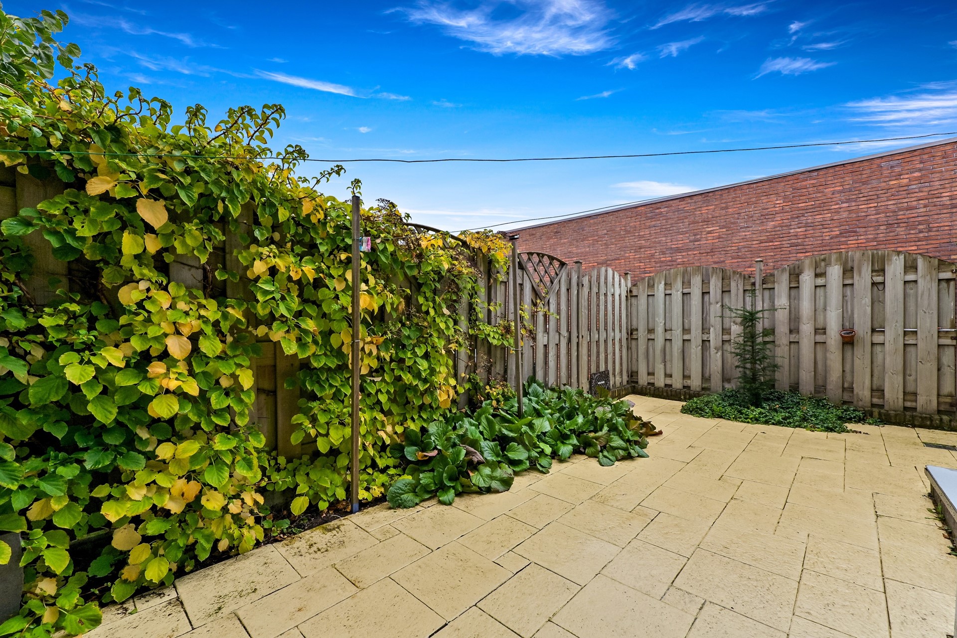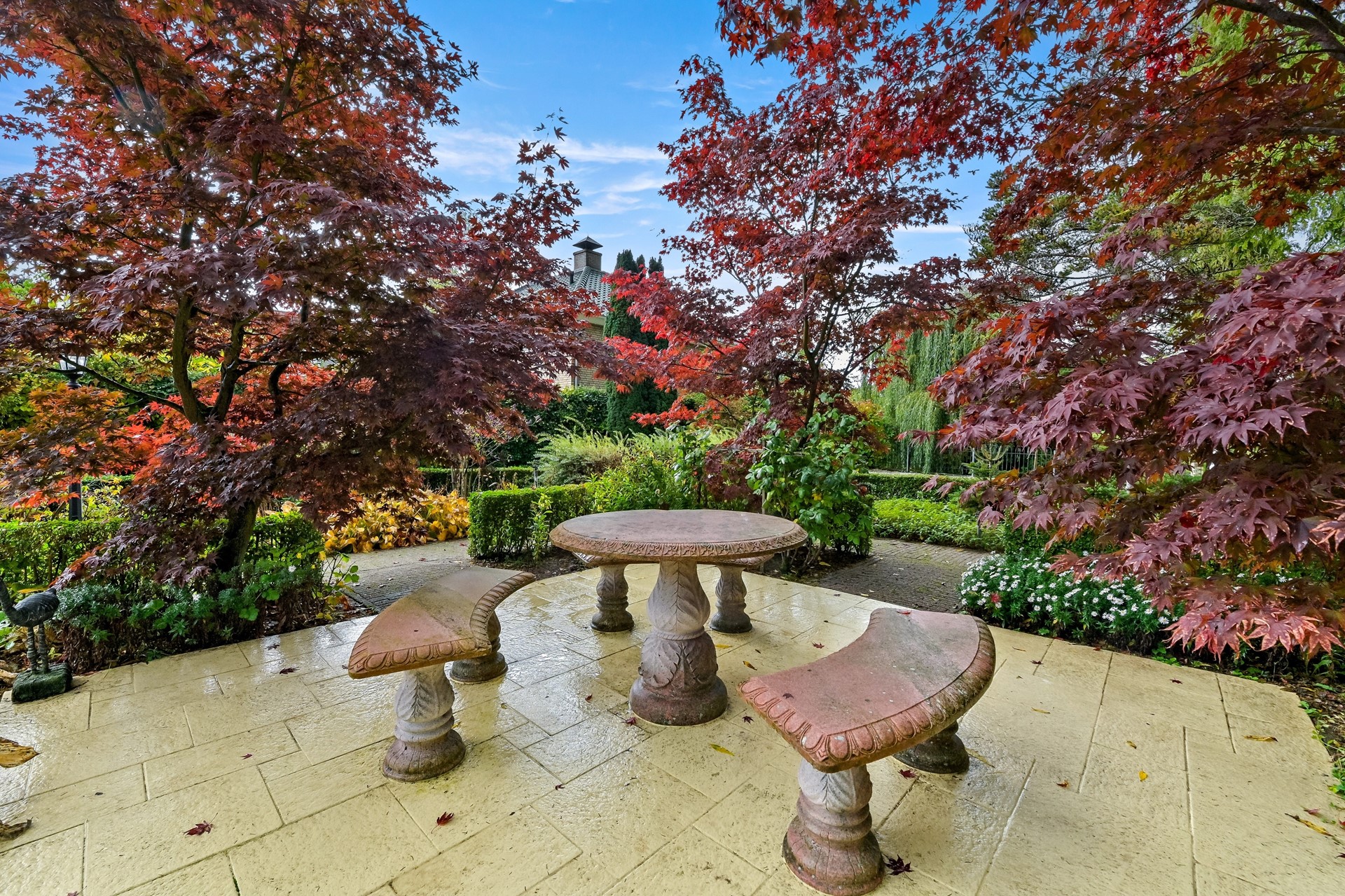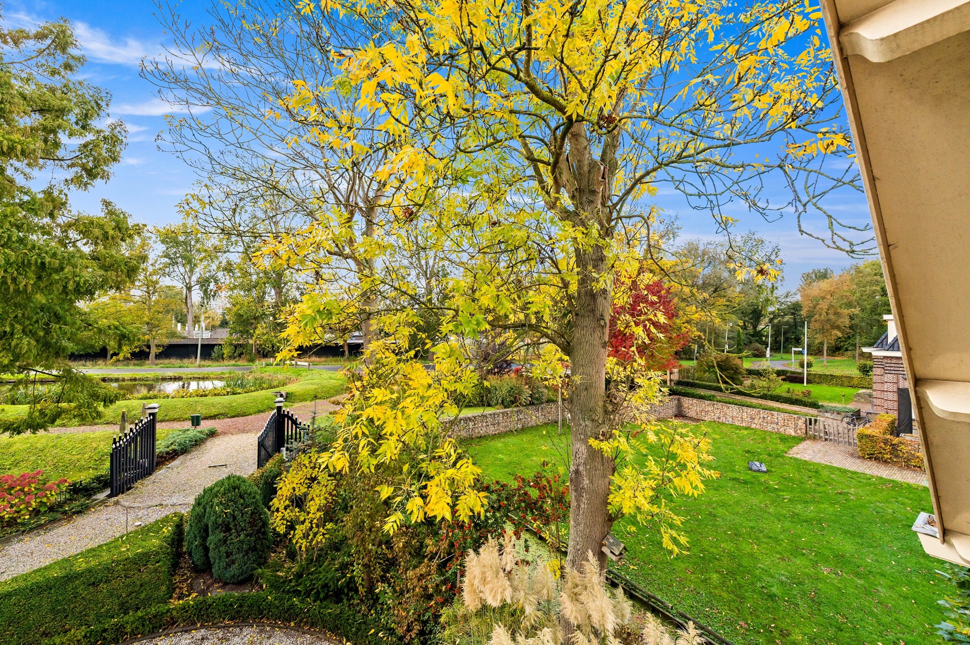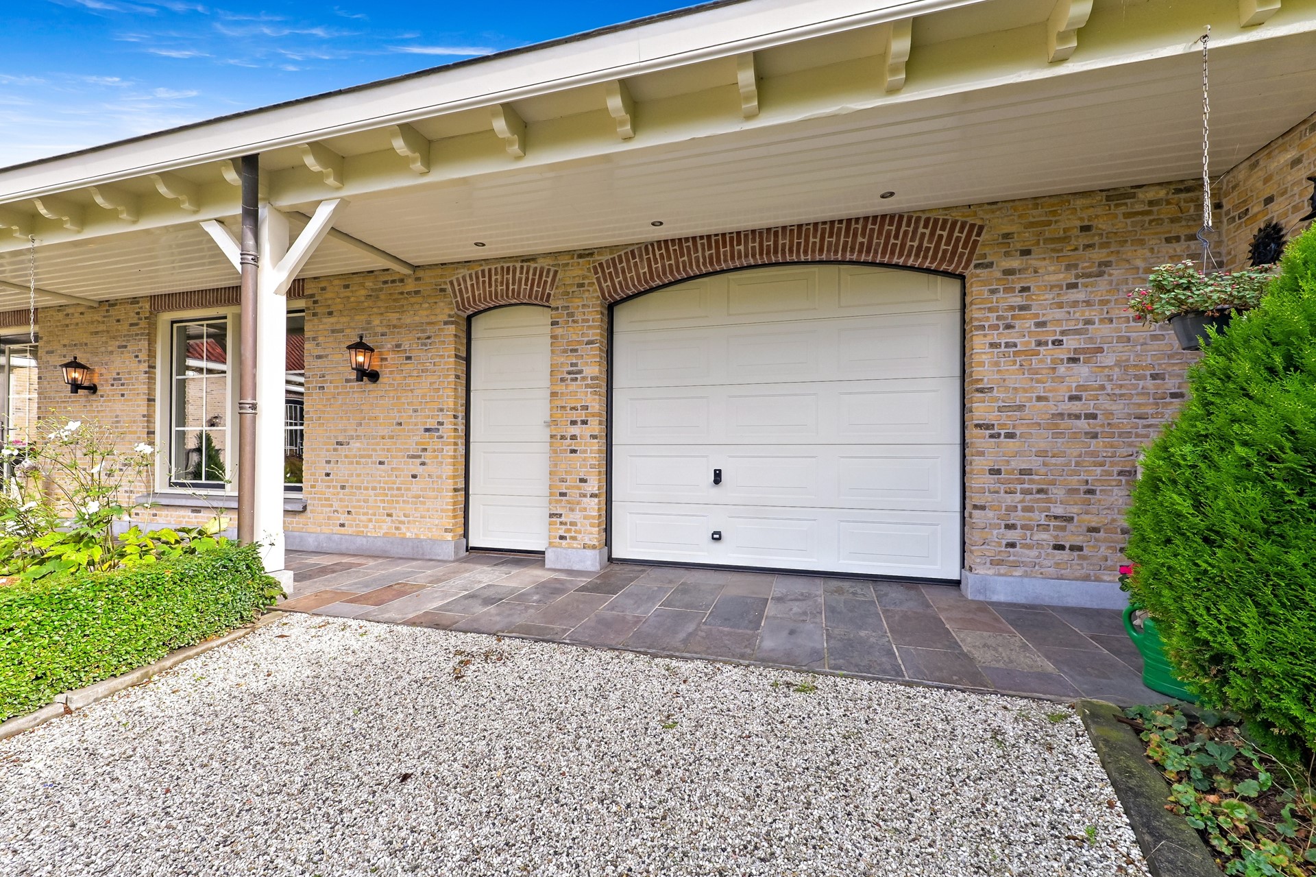De fraai aangelegde tuin grenzend aan de woning is een lust voor het oog. Aan de voorzijde een klassieke tuinopzet met geometrische vormen, aan de achterzijde volop privacy in de beschut gelegen achtertuin. De lange oprit biedt bovendien ruimte voor meerdere auto’s op eigen terrein.