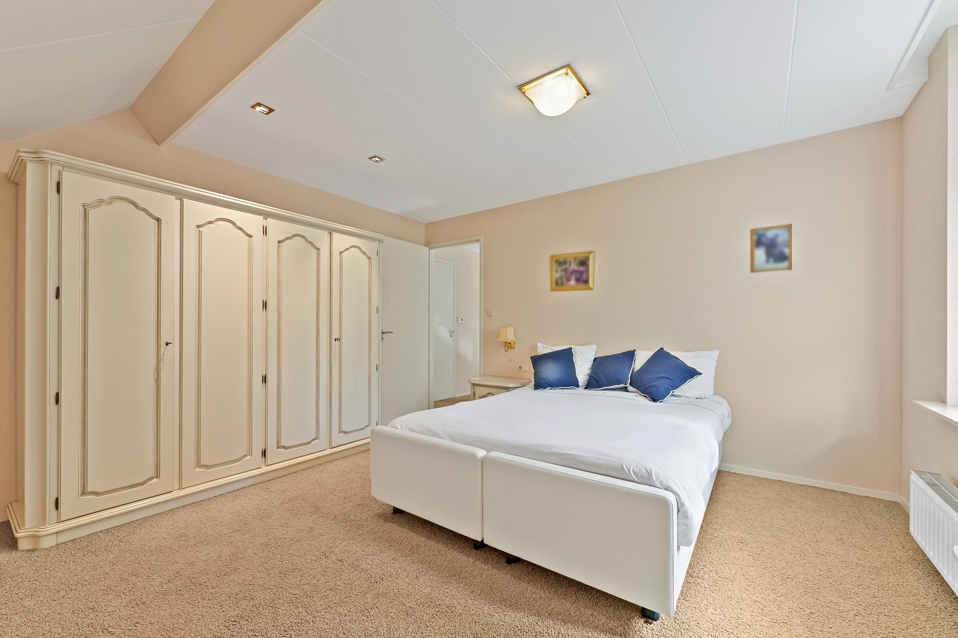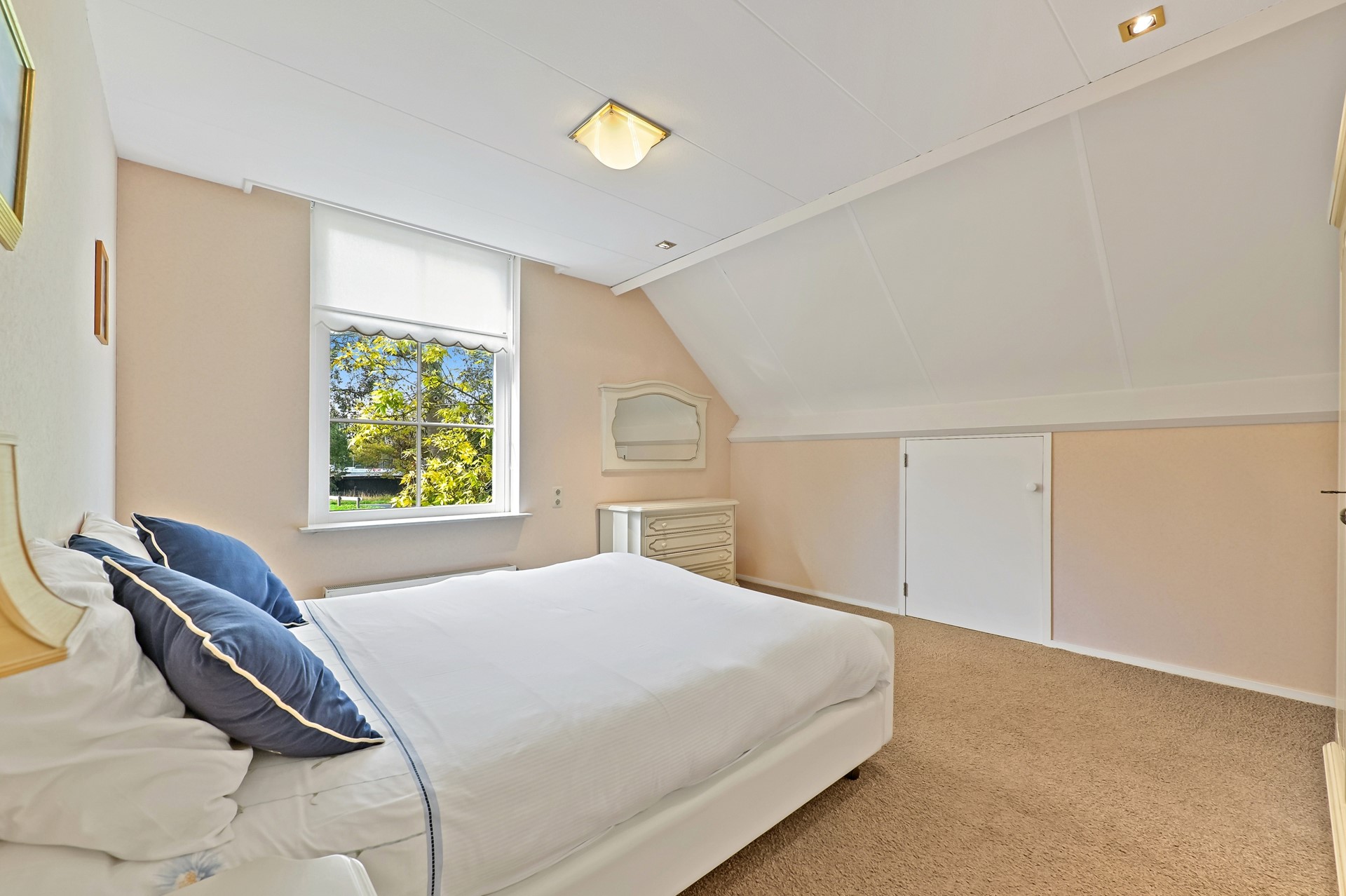 Op de eerste verdieping vindt u drie ruime slaapkamers, waarvan één met vide, welke nu in gebruik is als kantoor. Vanaf de overloop komt u via een met de hand gemaakte eikenhouten deur in de eerste slaapkamer. Deze kamer is zeer royaal van formaat en beschikt over een dakraam, bergruimte achter de knieschotten en een vlizotrap naar de bovengelegen ruime vliering. De derde slaapkamer aan de voorzijde is voorzien van veel kastruimte. Indien gewenst kan er op de eerste verdieping een extra slaapkamer kan worden gerealiseerd. Vanuit de andere vleugel zijn twee vides te bereiken middels een vlieringtrap. Hier vindt u onder andere de opstelplaats voor de C.V. ketel, boiler, hybride warmtepomp uit 2024 en een omvormer voor de zonnepanelen.