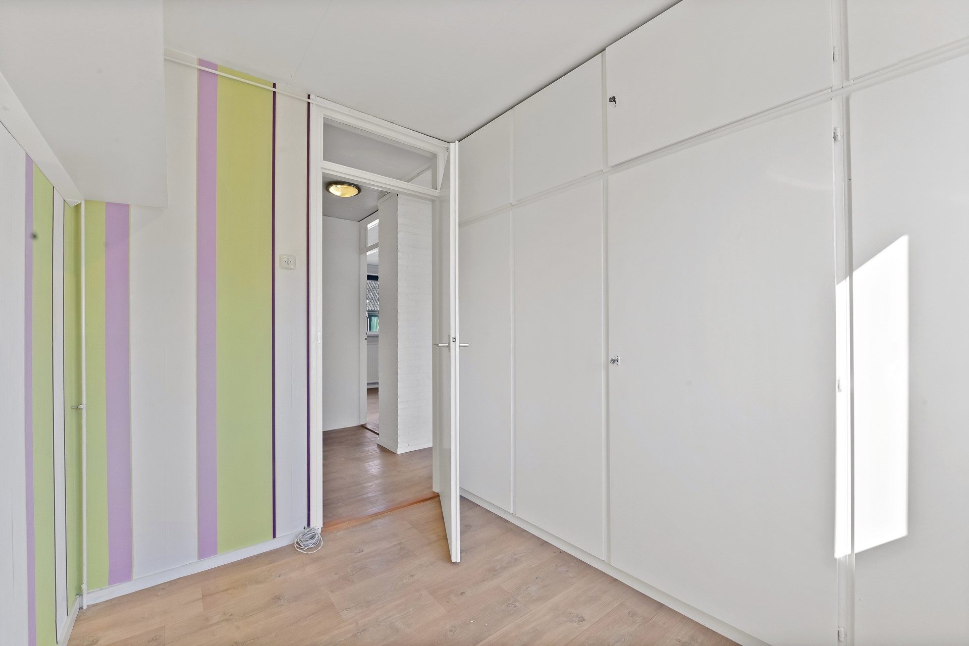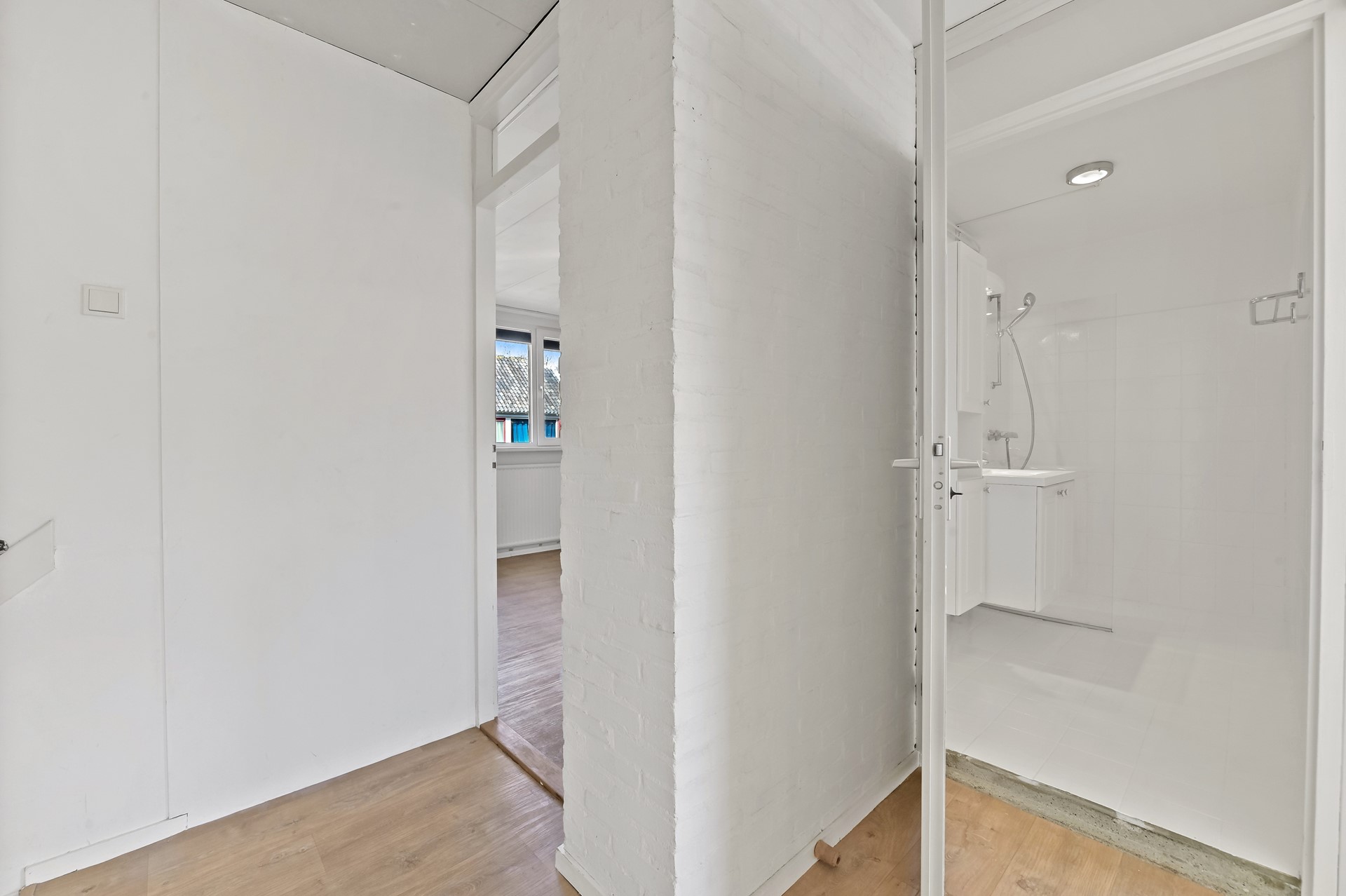 Via de overloop krijg je toegang tot alle vertrekken op deze verdieping. De ruime hoofdslaapkamer is aan de voorzijde van de woning gelegen. Oorspronkelijk zijn dit twee slaapkamers geweest. Indien gewenst kan deze kamer weer eenvoudig in twee aparte slaapkamers worden opgesplitst. De tweede slaapkamer is aan de achterzijde te vinden en deze beschikt over een vaste kast. Ook slaapkamer drie ligt aan de achterzijde. De inpandige badkamer is voorzien van een inloopdouche, wastafelmeubel en een aansluiting voor de wasmachine.