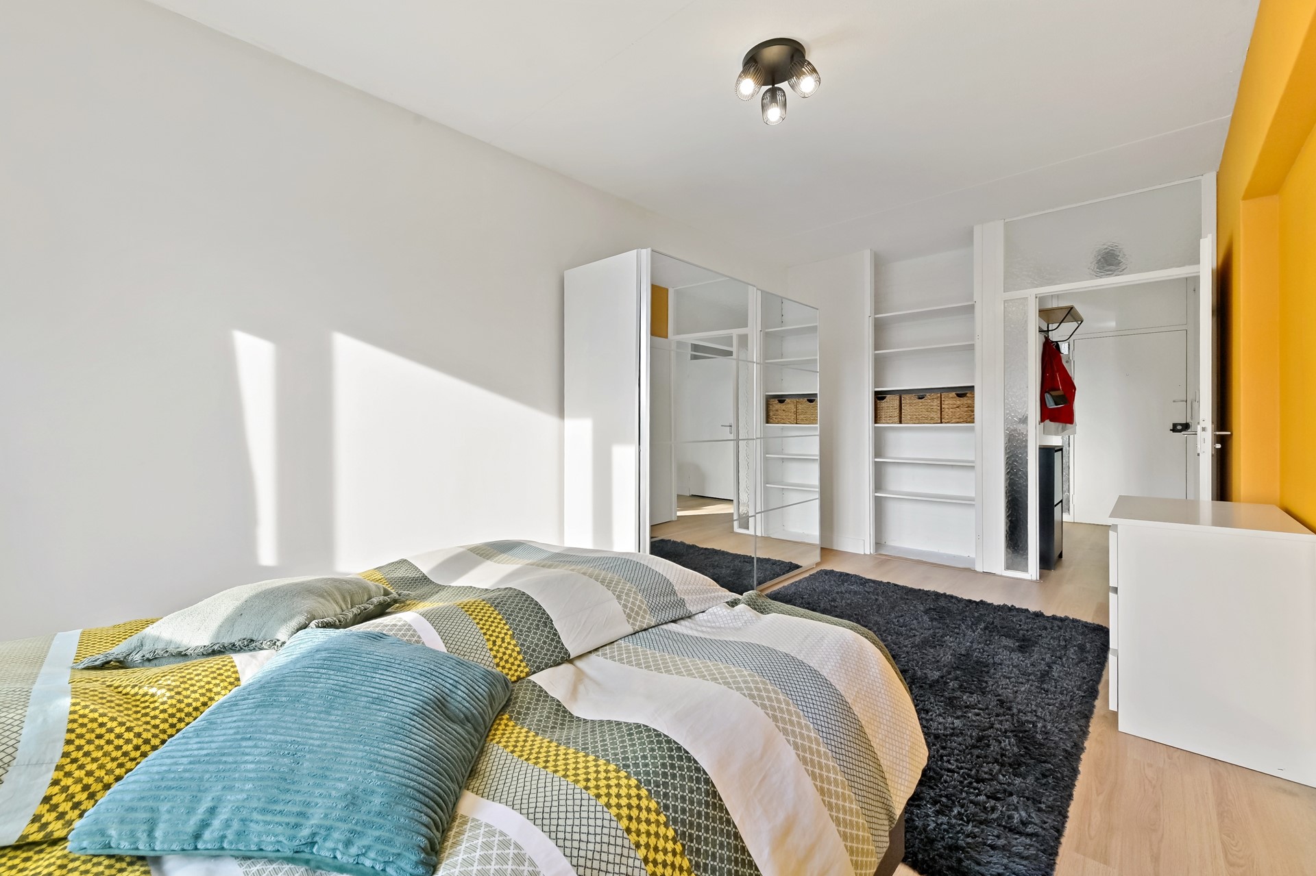 De centrale hal biedt toegang tot het appartement. Vanuit de hal met meterkast en moderne toiletruimte zijn alle vertrekken te bereiken. De woonkamer met aangrenzende keuken is sfeervol ingericht en grenst aan het zonnige balkon. Het balkon is aan de achterzijde gelegen en kijkt uit op een groenstrook met vijverpartij en fontein, waardoor je hier in alle rust van de middag- en avondzon kunt genieten. De moderne open keuken is voorzien van een 4-pits gaskookplaat, afzuigkap, oven en vaatwasser – alles wat je nodig hebt om lekker te koken. De ruime slaapkamer met vaste kast biedt voldoende plek voor een groot bed en kledingkast. De badkamer is in het midden van het appartement gesitueerd en voorzien van douche, wastafel, spiegelkast en aansluiting voor de wasmachine en wasdroger. De laminaatvloer loopt door in de hele woning (m.u.v. de natte ruimtes), wat zorgt voor een verzorgde afwerking.